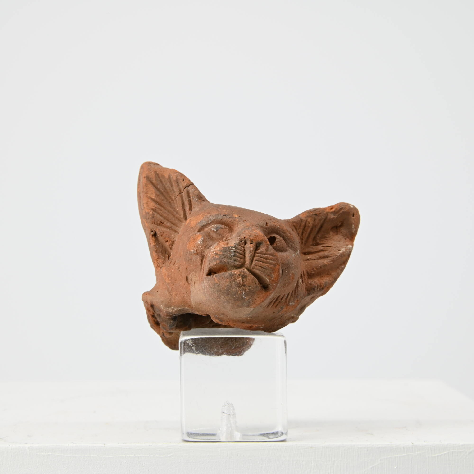 DescriptionKopf einer Katze mit relativ großen, dreieckig aufgestellten Ohren, die innen schraffiert sind. Schnurrhaare und Mähne sind zart eingeritztDimensionsH 5,0 cm