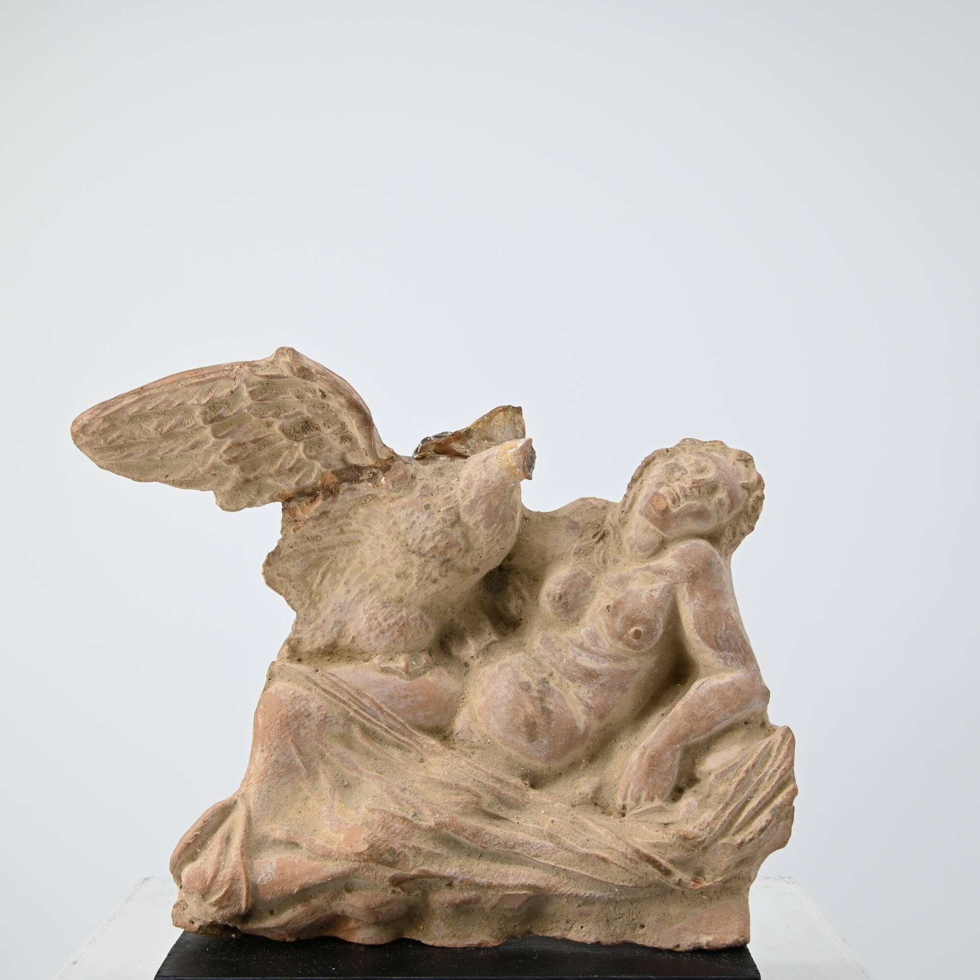 DescriptionLeda mit dem Schwan. Fälschung. Linker Flügel und Hals des Schwans abgebrochen.DimensionsH 10,0 cm, B 12,0 cm