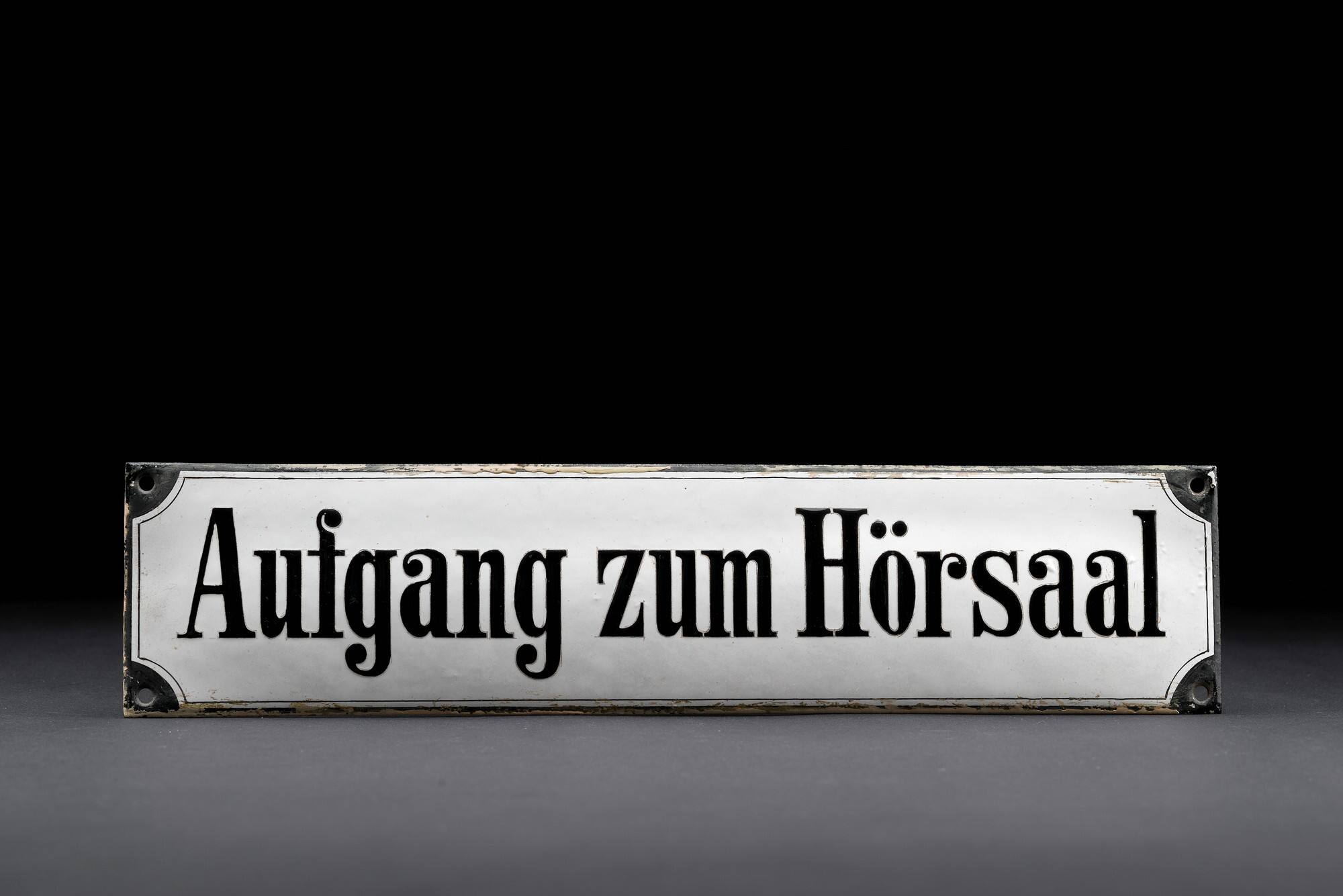 Das Schild „ Aufgang zum Hörsaal“ ist wesentlich moderner und stammt aus dem