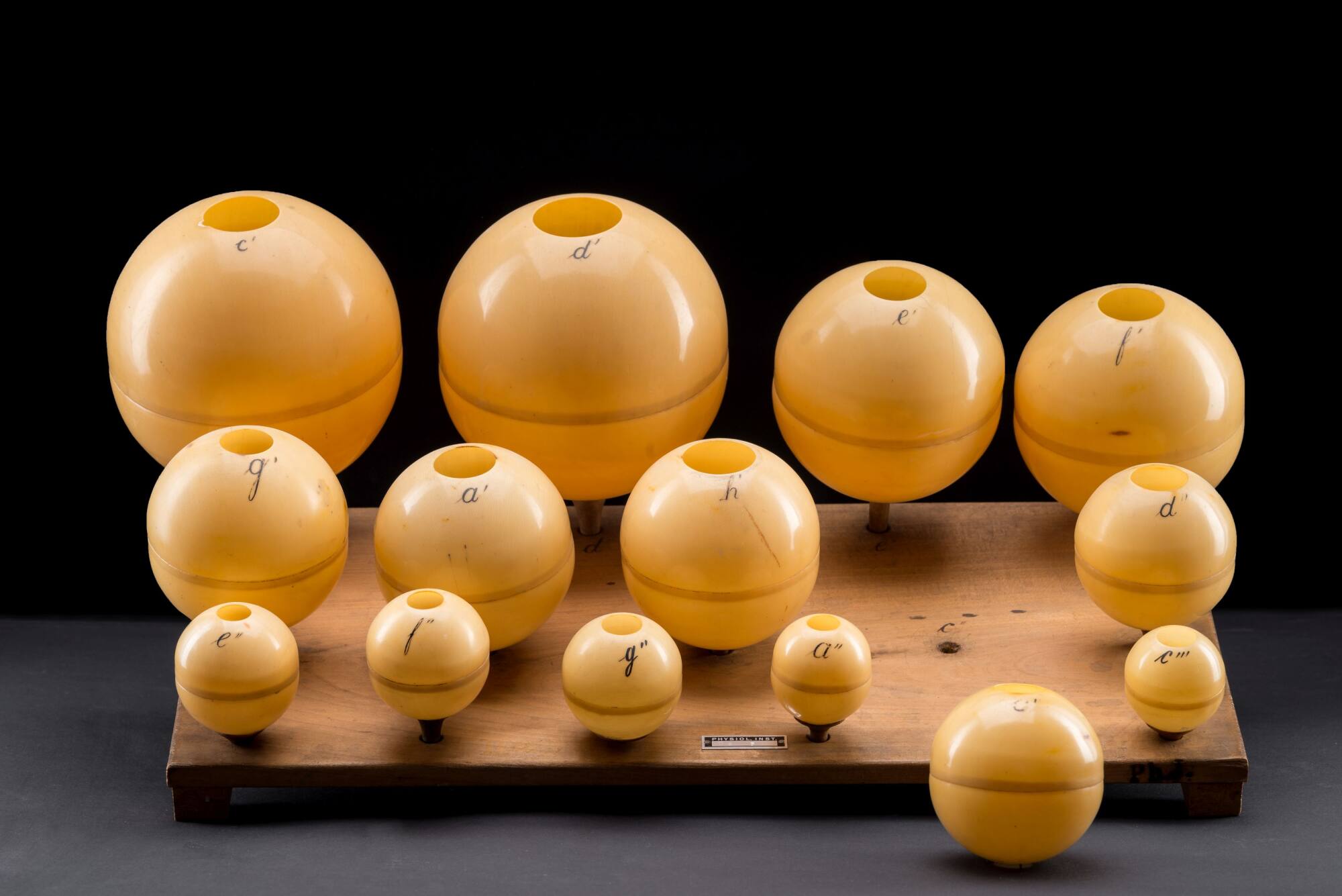 14 Resonatoren; Resonatoren dienten zur (subjektiven) Klanganalyse. Lit.: Müller-Pouillet, Bd 1, 762–764; Warner/Bud, Instruments (1998), 308; Helmholtz, Lehre von den Tonempfindungen
