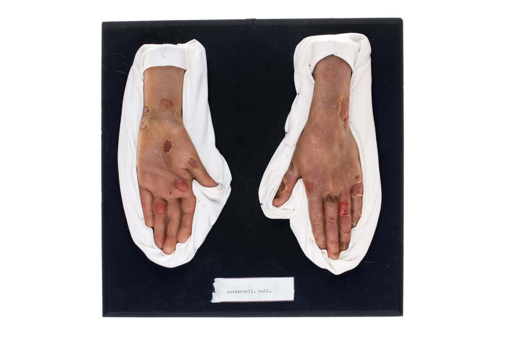 DescriptionHistorischer Patient: Geschlecht unbekannt, linke Hand von Vorder- und RückseiteEinzelmodell/Gruppe/Reihe: vermutlich Einzelmodell