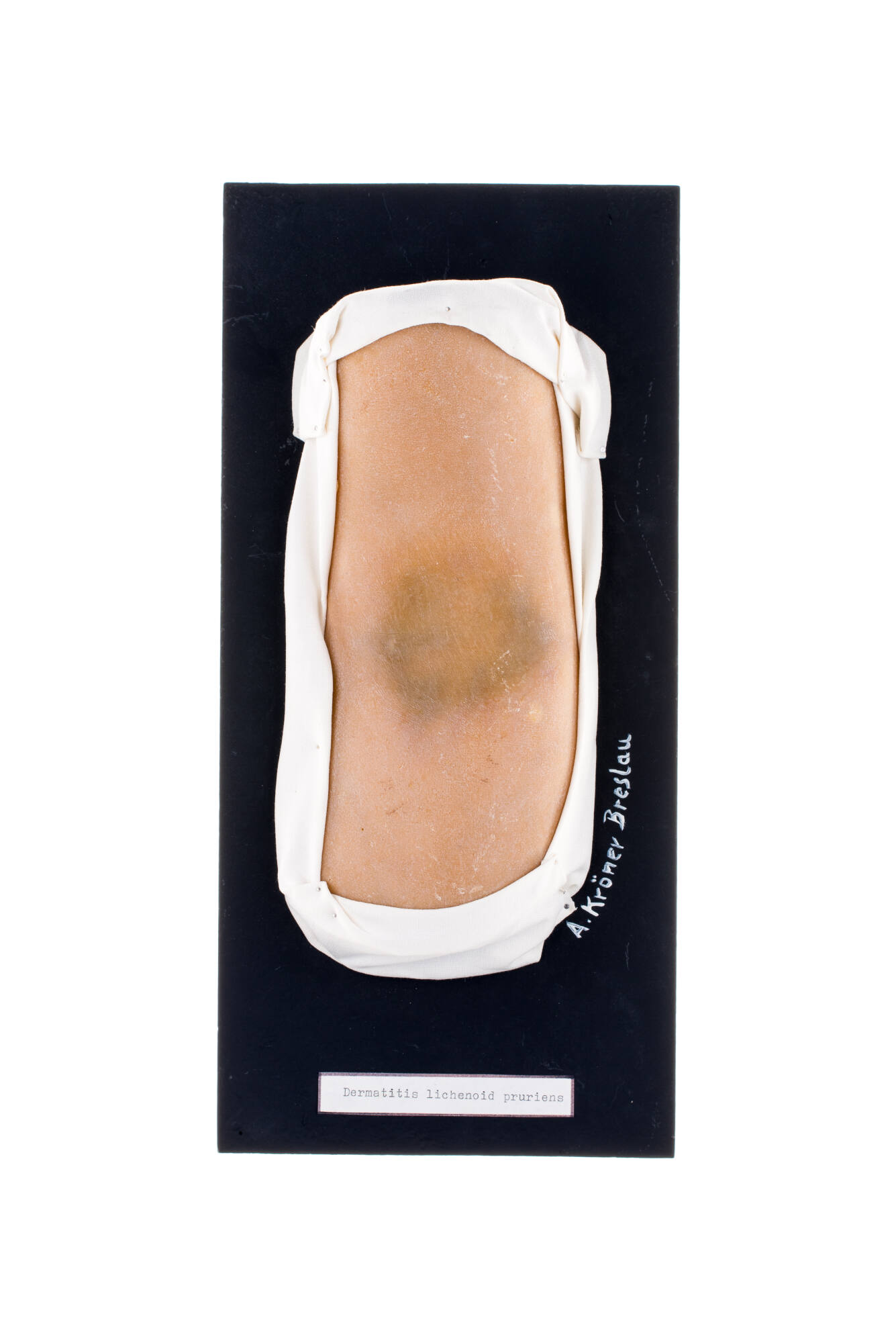Moulagenkörper: Wachs bemalt/gefärbt Einfassung: Textil, Metall