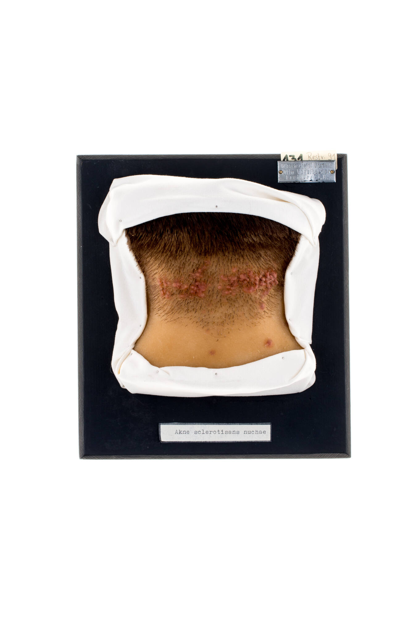 DescriptionHistorischer Patient: Geschlecht unbekannt, Nackenbereich mit HaaransatzEinzelmodell/Gruppe/Reihe: vermutlich Einzelmodell