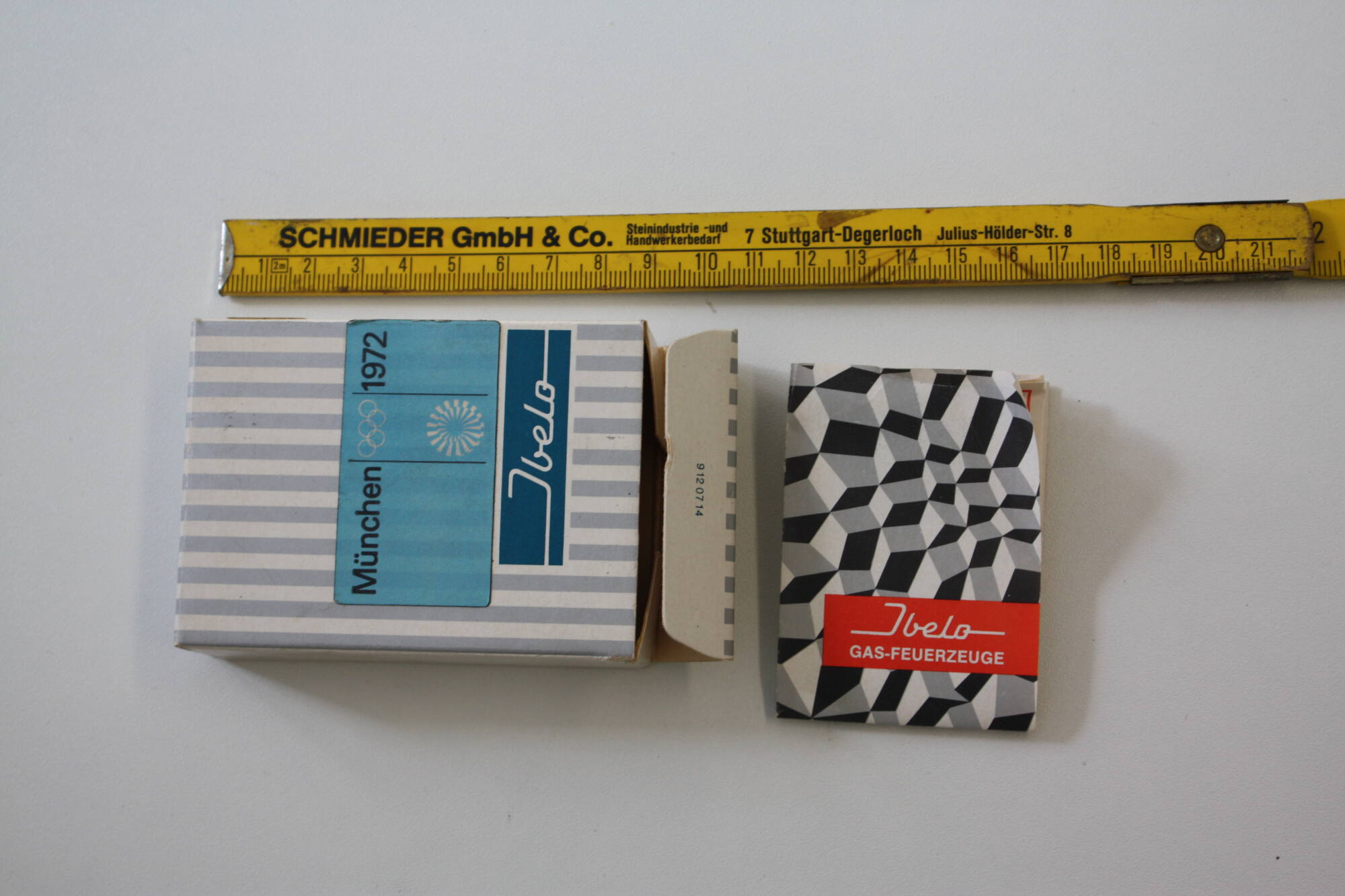 DescriptionDie Verpackung ist weiß-silber gestreift, in ihr befindet sich eine Bedienungsanleitung. Auf der Vorderseite ist ein hellblauer Aufkleber auf dem die Aufschrift, "München 1972" sowie die Olympiaembleme abgebildet sind. Darunter ist das Logo des Herstellers gedruckt. Die beiden Längsseiten sind weiß.DimensionsL x B x H: 9 × 6,5 × 2,5 cm (90 × 65 × 25 mm)