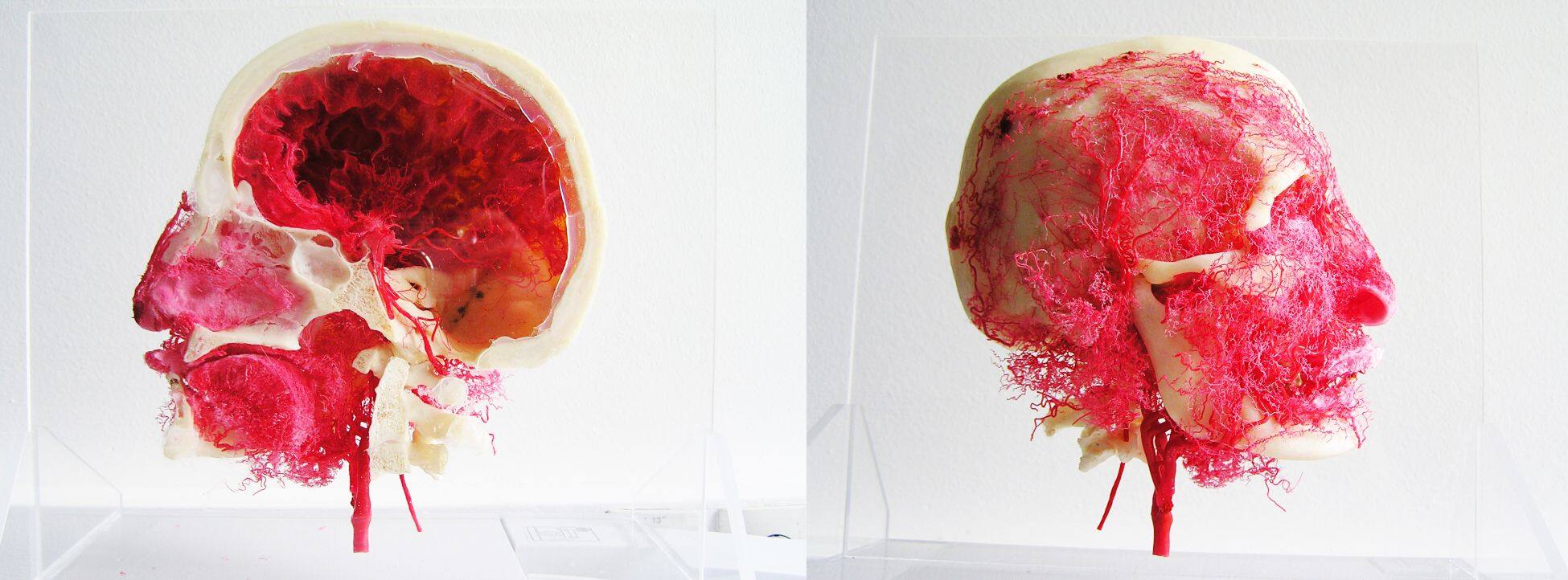 Description"3e3t" Korrosionspräparat, Arterienversorgung des Kopfes. Korrosionspräparate sind negative Ausgüsse von Injektionspräparaten, welche anatomische Hohlraumsysteme mittels einer Injektion dreidimensional darstellen.Object numberUKT-As-7