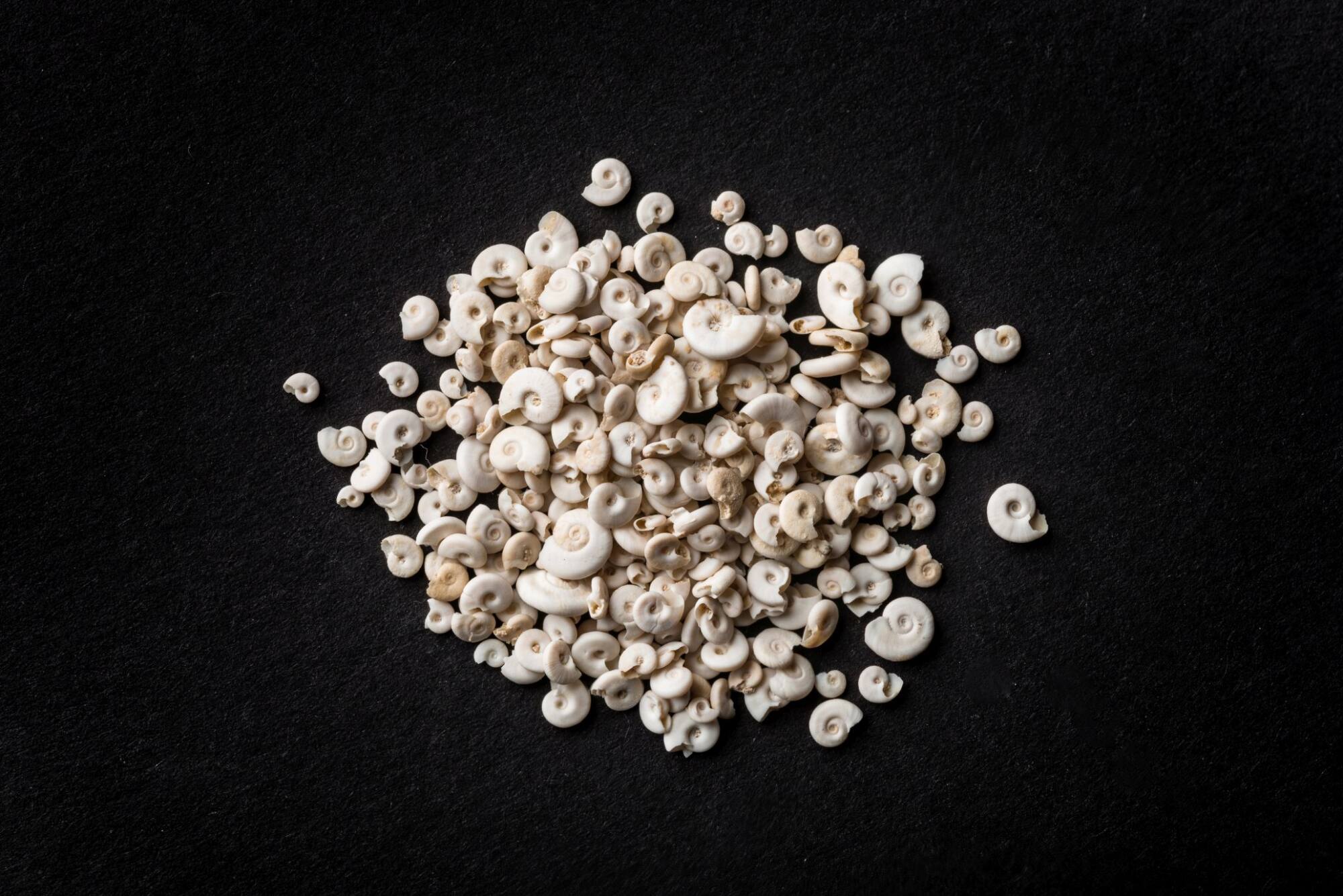 Zu sehen sind Schnecken der Gattung Gyraulus, auch bekannt als "Posthörnchen". Es handelt sich um kleine Süßwasserschnecken, die größtenteils Luft zum Atmen benötigen. Die ältesten Fossilien dieser Gattung stammen aus der frühen Kreide, und sind ungefähr 125 Millionen Jahre alt. Sie leben hauptsächlich festgesaugt an Wasserpflanzen im Süßwasser.