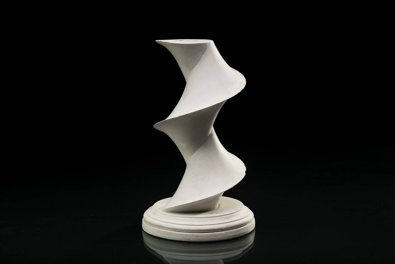 DescriptionSchraubenfläche von constantem negativen Krümmungsmass (Meridiancurve ist die Tractrix. Vgl. U. Dini, Comptes Rendus Acad. Sc. Paris 1865, 1. Sem. S. 340.) Von Dr. P. Vogel(Ludwig Brill, Catalog mathematischer Modelle, [1. Aufl. 1881] 3. Aufl. Darmstadt 1885, S. 11.)