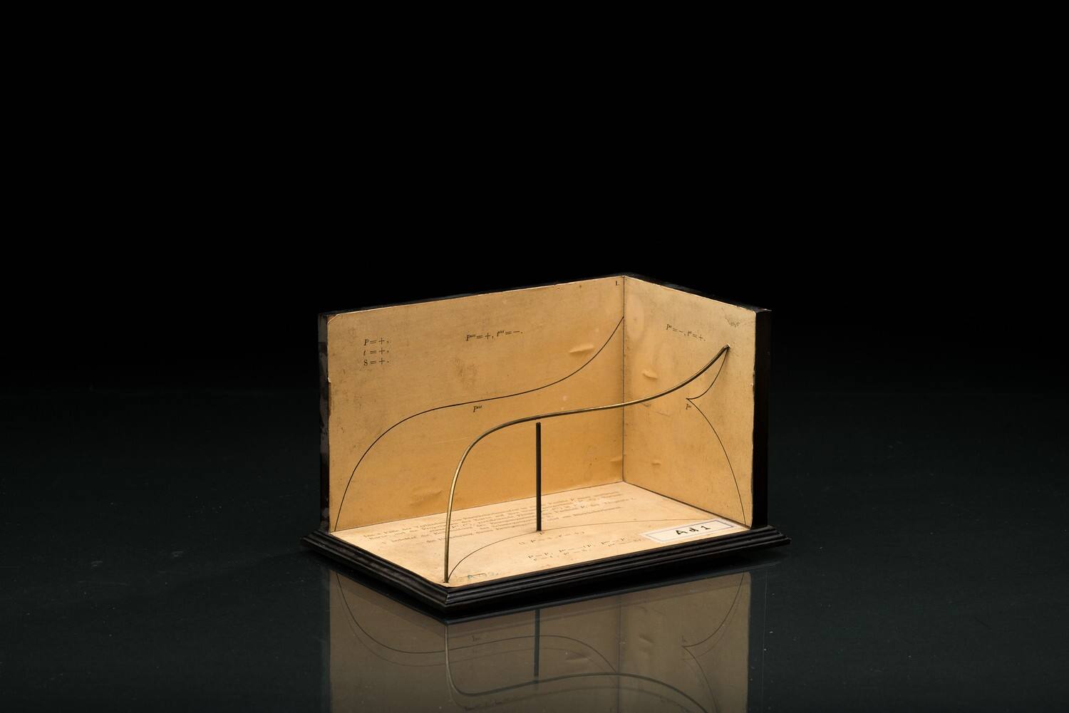 DescriptionAcht Modelle über die Abhängigkeit der Rückkehrelemente der Projektionen einer unebenen Kurve von denen der Kurve selbst. Von Geh. Hofrath Dr. Chr. Wiener, Professor an der Grossh. polytechnischen Schule zu Karlsruhe. [...], Ganze Serie: 45 Mark, Darmstadt 1884. (Ludwig Brill, Catalog mathematischer Modelle, [1. Aufl. 1881] 3. Aufl. Darmstadt 1885, S. 23.)