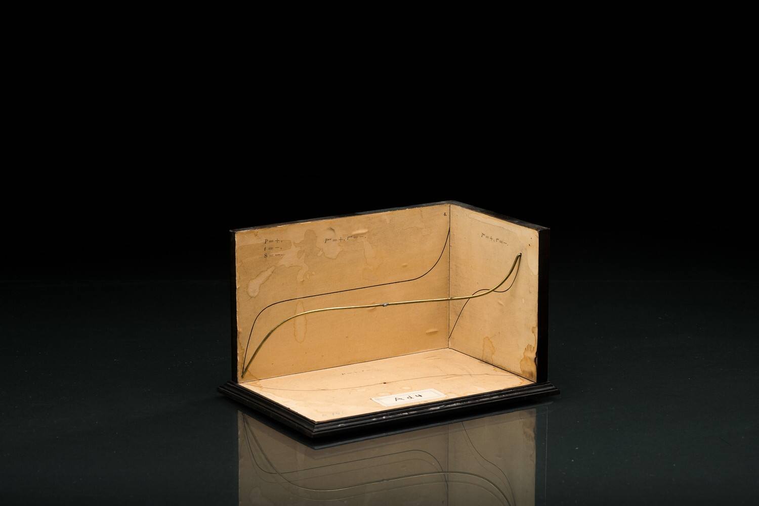 DescriptionAcht Modelle über die Abhängigkeit der Rückkehrelemente der Projektionen einer unebenen Kurve von denen der Kurve selbst. Von Geh. Hofrath Dr. Chr. Wiener, Professor an der Grossh. polytechnischen Schule zu Karlsruhe. [...], Ganze Serie: 45 Mark, Darmstadt 1884. (Ludwig Brill, Catalog mathematischer Modelle, [1. Aufl. 1881] 3. Aufl. Darmstadt 1885, S. 23.)