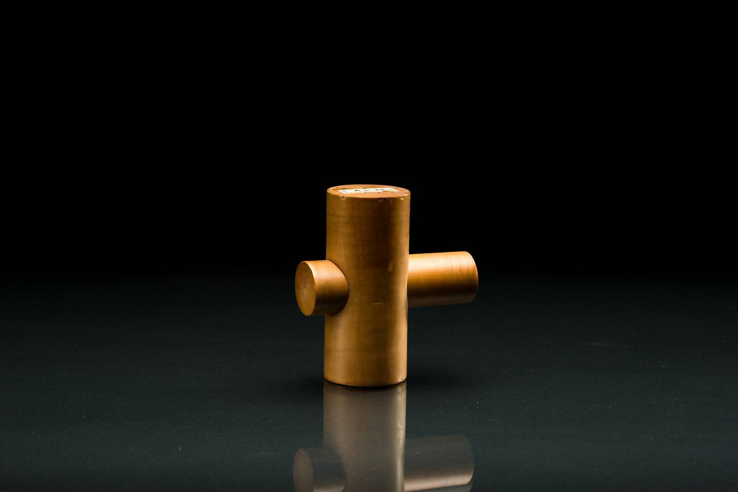 DescriptionHolzmodelle: Durchdringungen stereometrisch einfacher Gebilde.Zwei Zylinder mit senkrechten Achsen; die Durchschnittskurve besteht aus 2 getrennten Achsen. Ehrhard und Co. in Bensheim a. B.[ergstrasse], Preis 2.50 M.