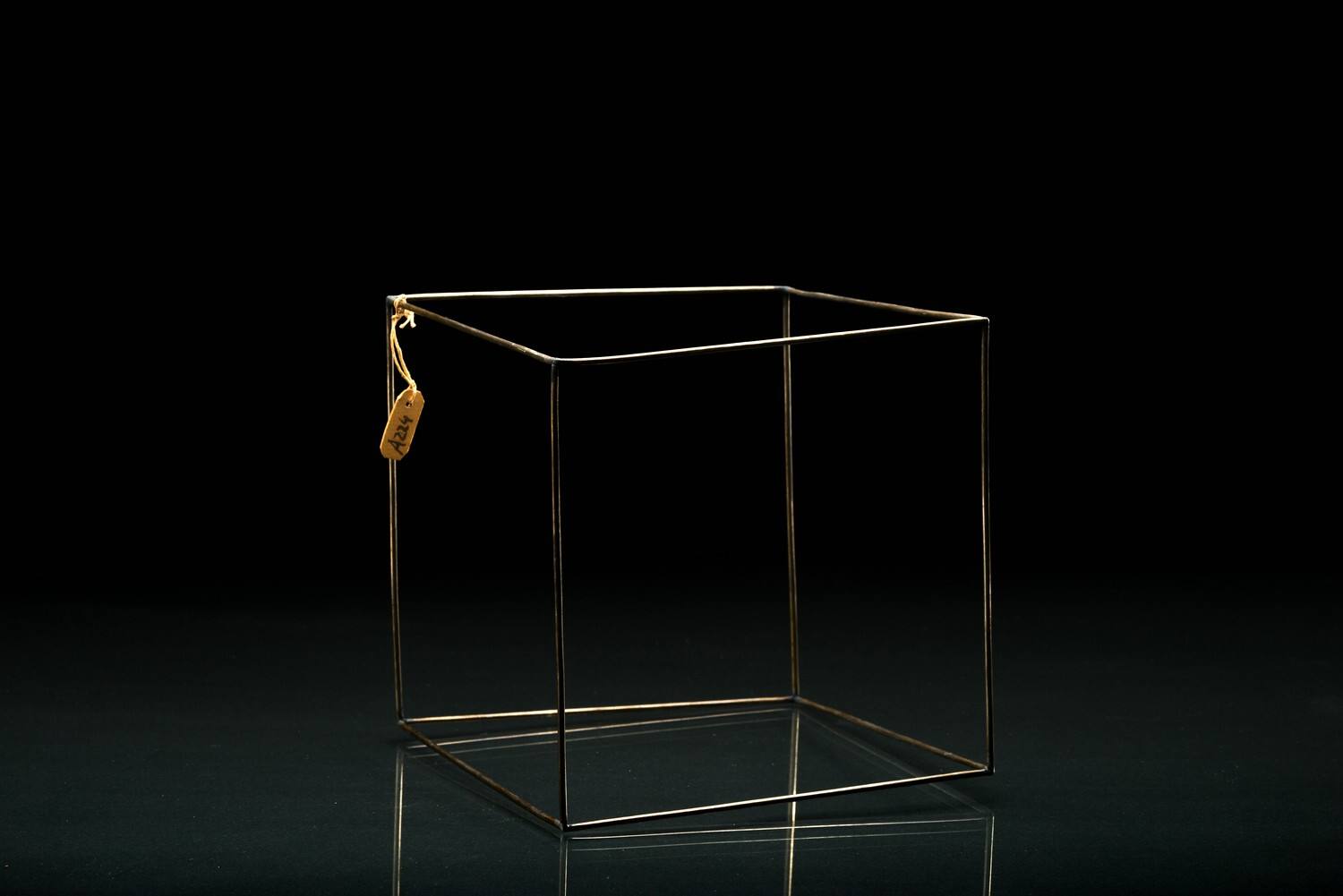 DescriptionWürfel mit 20 cm Kantenlänge, dargestellt durch seine 12 Kanten aus vernickeltem Messingdraht.Von Mechaniker Albrecht, Tübingen (1894) Preis zus. (1 und 2) 10.– M.