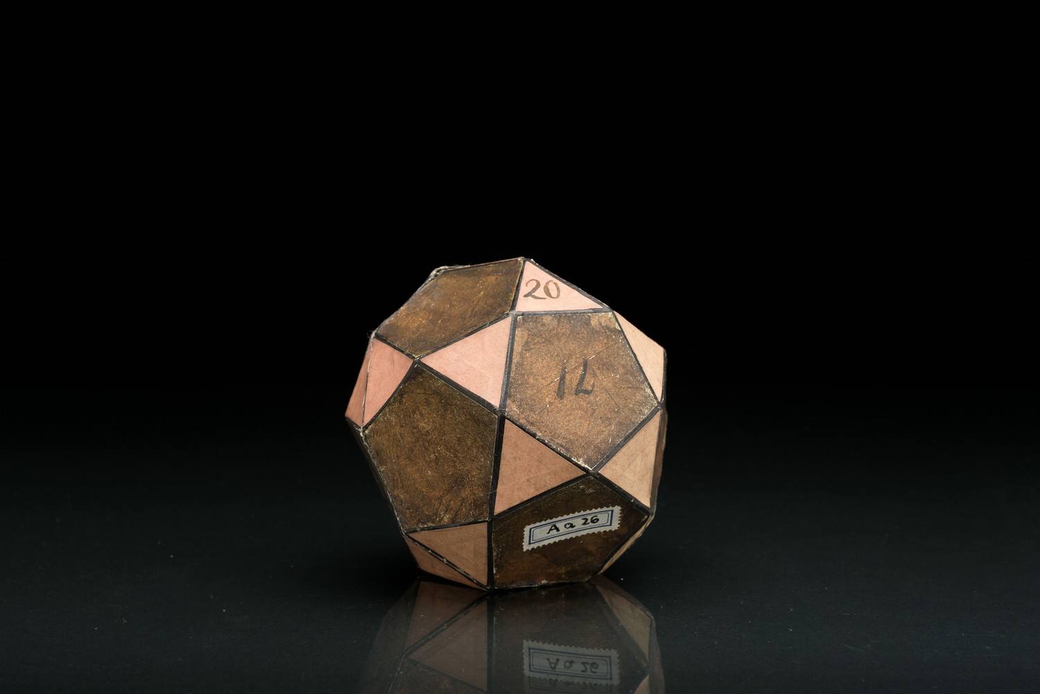 DescriptionDie (Archimedischen) halbregulären Polyeder (alle Ecken kongruent oder […], alle Flächen regulär). Außer den folgenden 13 Körpern gibt es noch zwei Typen: a) der n= […] Prisma, b) das n= […] AntiprismaE[cken]= 30, K[anten]= 60, F[lächen]= 32 (20 Dreiecke, 12 Fünfecke), Brückner Tafel 6, Fig. 26, Von der Sternwarte übernommen.
