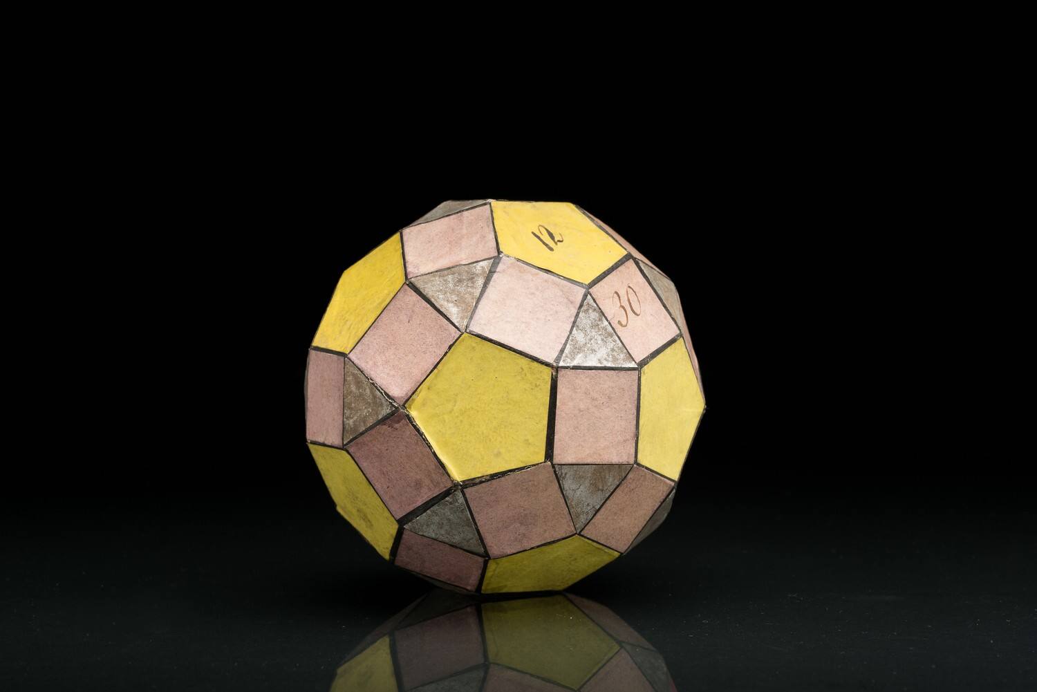 DescriptionDie (Archimedischen) halbregulären Polyeder (alle Ecken kongruent oder […], alle Flächen regulär). Außer den folgenden 13 Körpern gibt es noch zwei Typen: a) der n= […] Prisma, b) das n= […] AntiprismaE[cken]= 60, K[anten]= 120, F[lächen]= 62 (20 Dreiecke, 30 Vierecke, 12 Fünfecke), Brückner Tafel 6, Fig. 31, Von der Sternwarte übernommen.