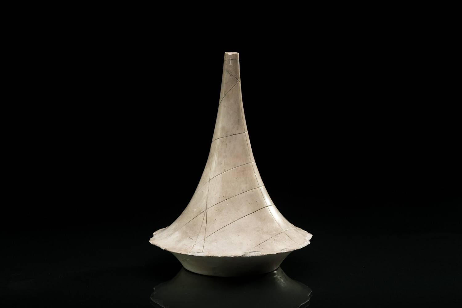 DescriptionNr. 1, Die Rotationsfläche der Tractrix mit geodätischen und Haupttangenten-Curven. Modelliert von stud. math. I.[Isaak] Bacharach. (Grösse des Modells 25–18 cm.) Preis 9 Mark.(Ludwig Brill, 1885, 1. Teil, S. 3, Serie 1, Nr. 1.)