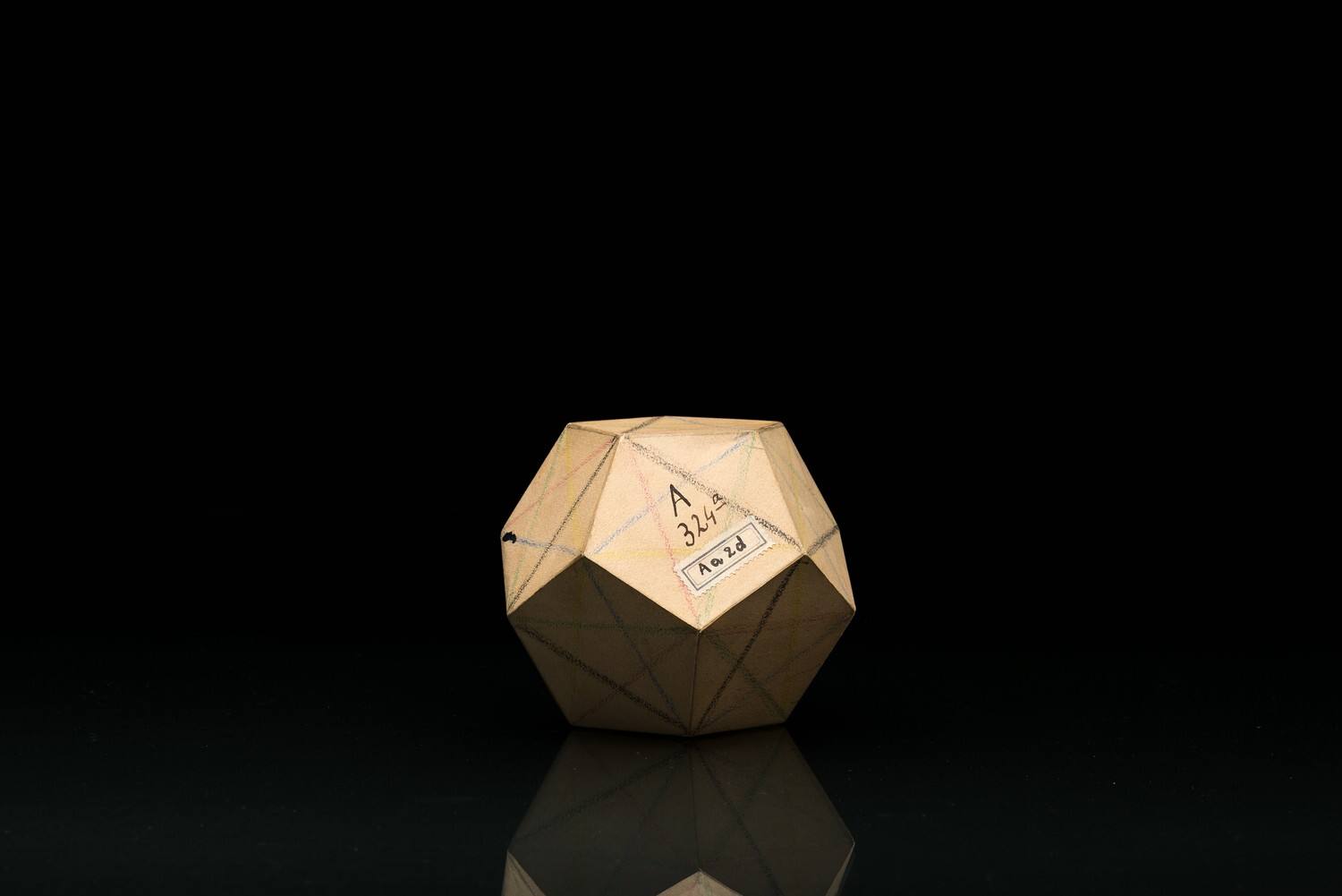 DescriptionSechs regelmäßige Körper aus Papier und Papper: [...] d: Dodekaeder.(Inventar des Mathematischen Seminars der Universität Tübingen, 1933, S. 6–7.)