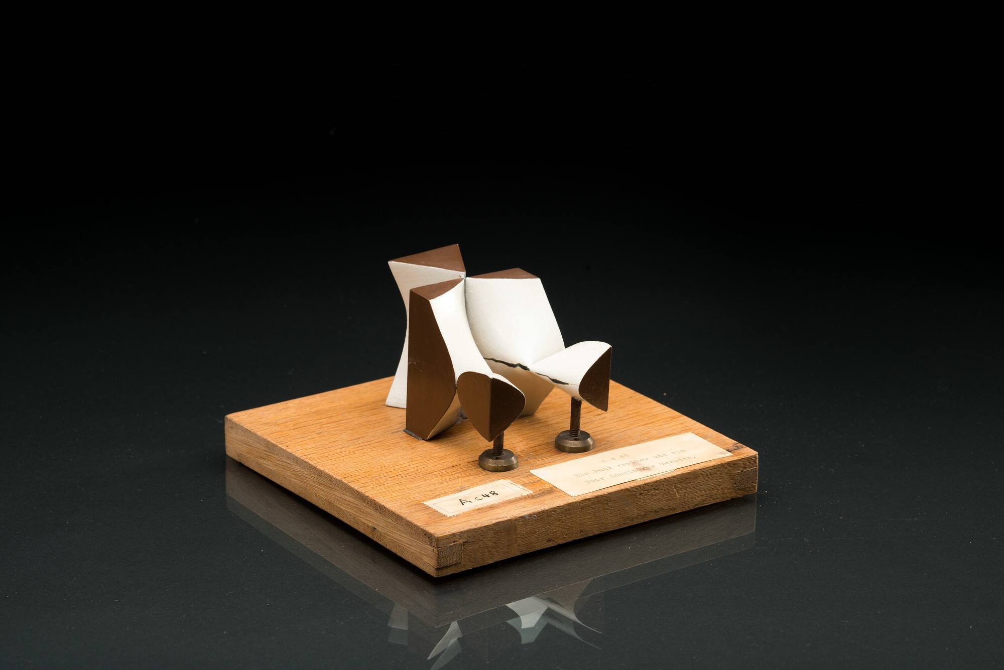 Description27 mathematische Oberflächen nach Plücker, in Zinkguß: Äquatorialkomplexflächen (vgl. dessen Neue Geometrie des Raumes): Ein beweglicher Kugelschnitt, [...] dessen beide Scheitel haben in 2 zueinander und auf der Ebene der bewegl. Kugelschnitts senkrecht stehenden Ebenen folgende Seitkurve. Von W. Lesemeister in Köln. Preis zus. 450.– M.(Inventar des Mathematischen Seminars der Universität Tübingen, 1933, S. 18–19.)