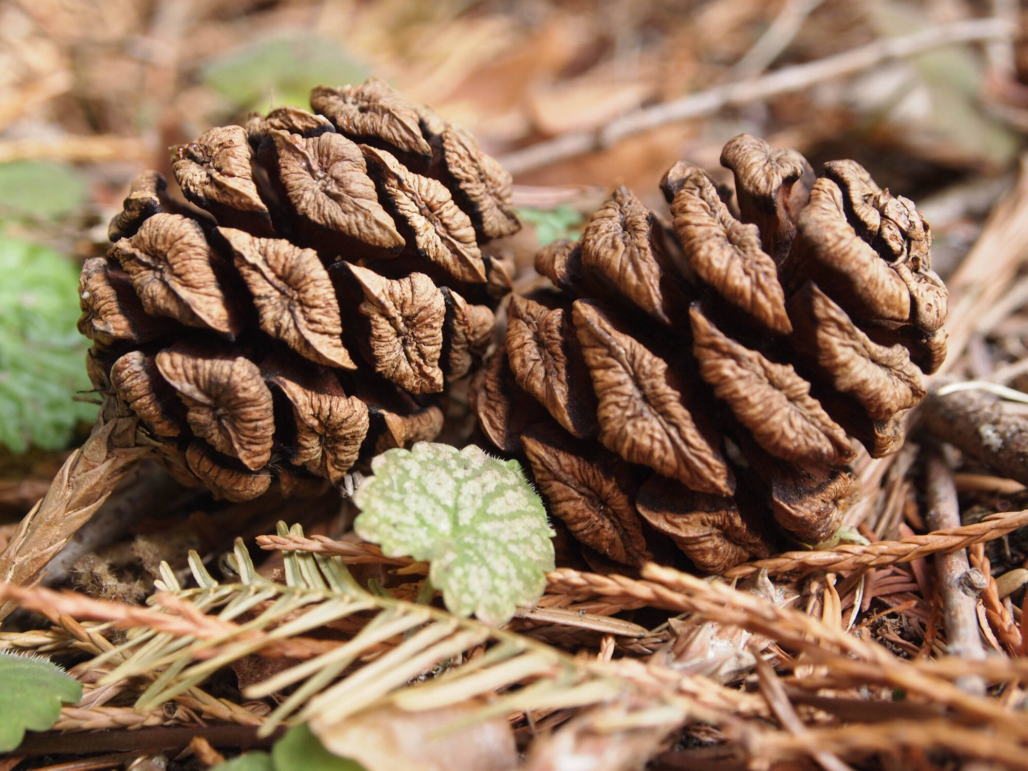 Auffällig ist die rotbraune, dicke Borke, die den Stamm vor Feuer schützt. Die Zapfen sind überraschend klein, verbleiben viele Jahre am Baum und öffnen sich v.a. nach Waldbränden.