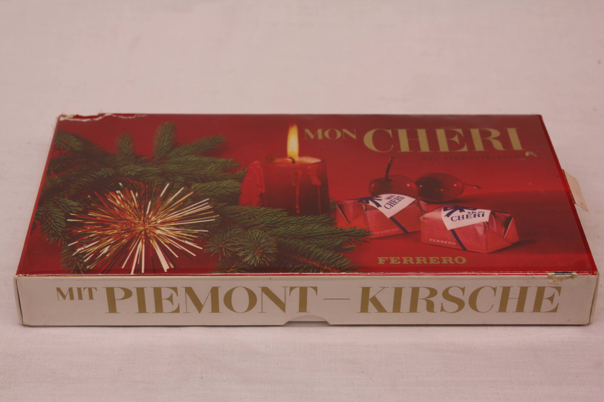 DescriptionMon Cheri. Aufdruckdekor: Kerze, Tannenzweig, Stern. Von Maus angenagt.Dimensions24 x 12 x 3 cm