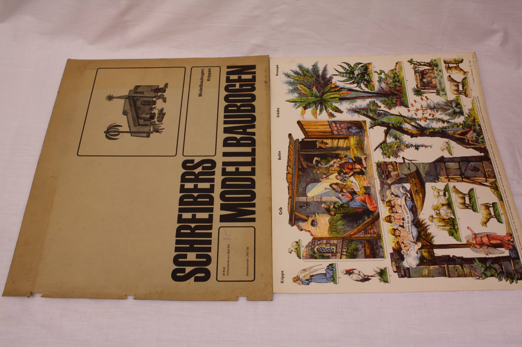 DescriptionAusschneidekrippe, 11 Teile mit Bauanleitung. Verlag J. F. Schreiber, Esslingen
