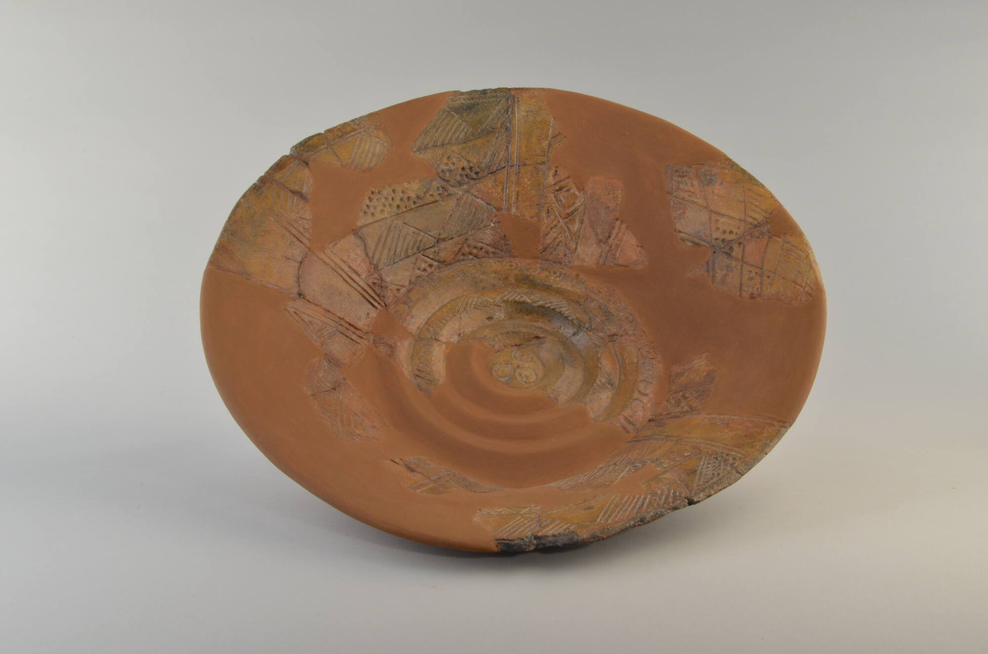 DescriptionIn den 1920er und 30er Jahren wurden bei der Bebauung des damaligen nordwestlichen Stadtrandes von Tübingen, in der Flur Geigerle, der heutigen Hallstattstraße sieben bereits stark gestörte Grabhügel vom Urgeschichtlichen Forschungsinstitut der Universität Tübingen registriert. Aus Hügel 2 stammen die Reste einer großen, flachen, ritzverzierten Schale des Alb-Hegau-Stils. Diese Keramik ist eine Eigenheit der südwestdeutschen Hallstattkultur und dürfte als spezielle Grabkeramik hergestellt worden sein.DimensionsHöhe: 9 cm