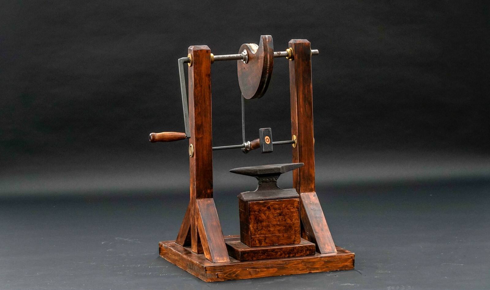 MediumHolzmodell eines Nockenwellenhammers mit Eisenelementen