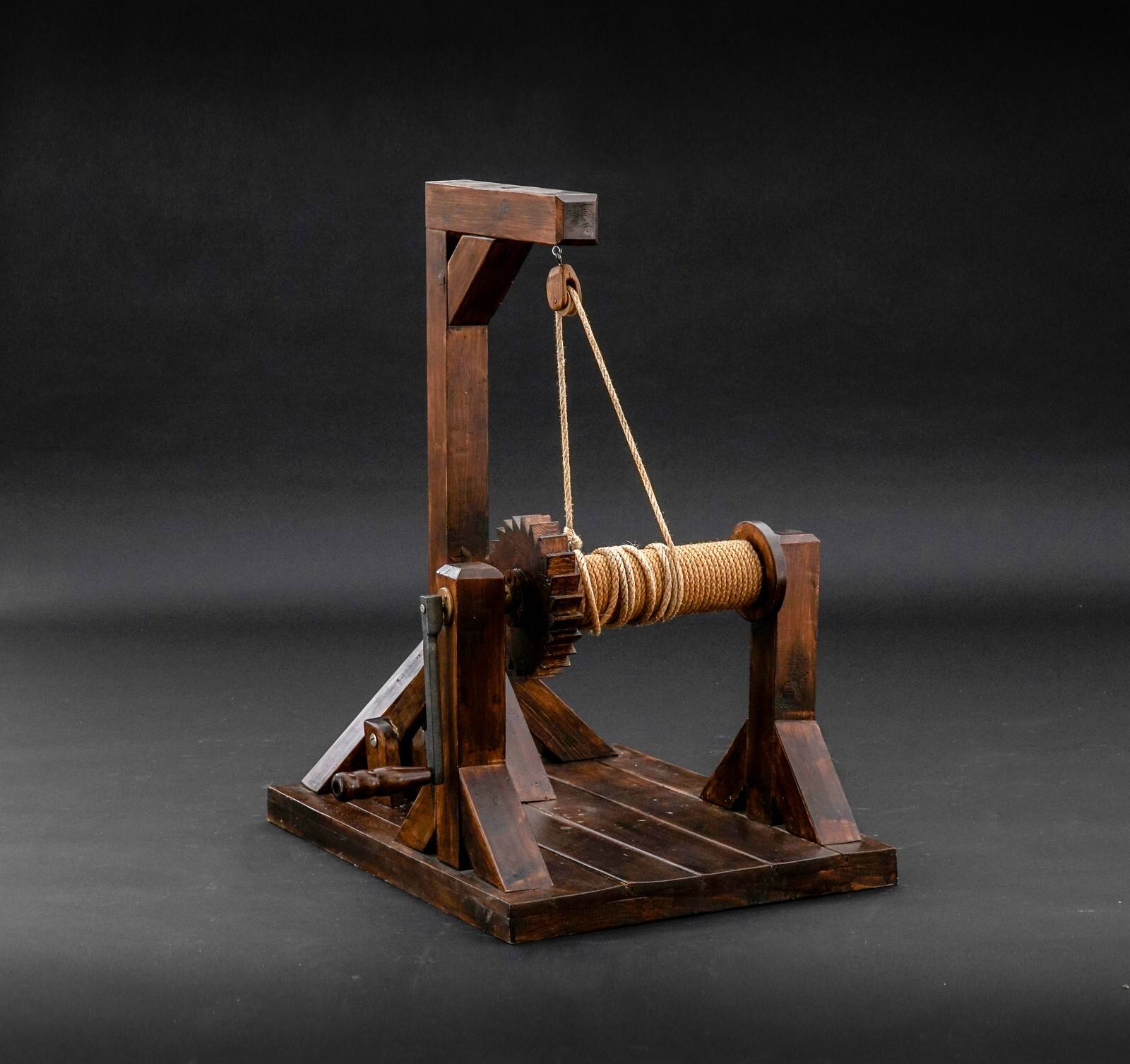Dieses Objekt gehört zu einer Wanderausstellung, die vom 3. Mai bis zum 1. Dezember 2019 in Tübingen zu sehen war und inzwischen weitergezogen ist. Die Maschinenkonstruktionen nach Skizzen Leonardo da Vincis wurden mit historischen Methoden und Werkzeugen in einer italienischen Werkstatt gefertigt.