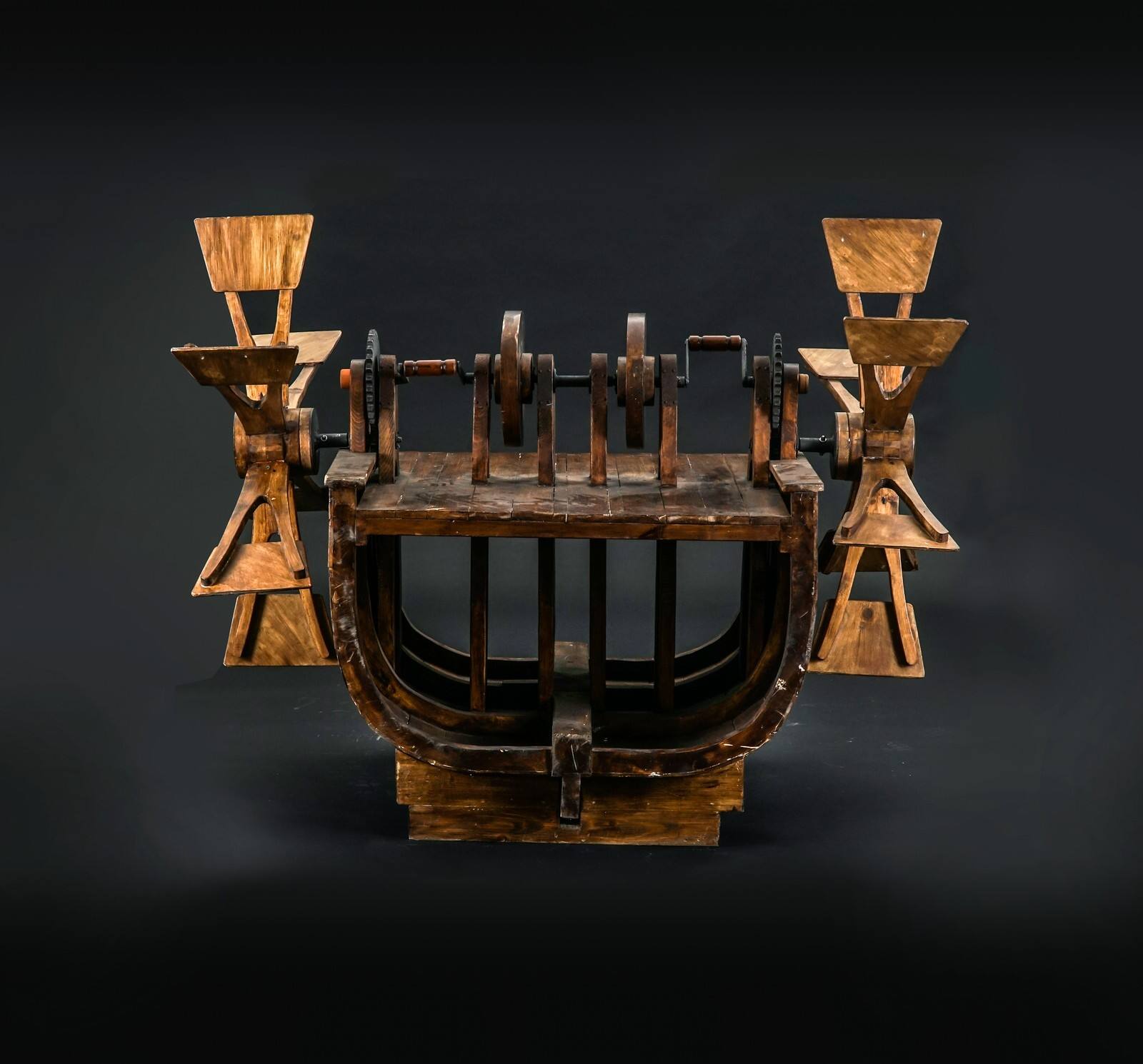 Dieses Objekt gehört zu einer Wanderausstellung, die vom 3. Mai bis zum 1. Dezember 2019 in Tübingen zu sehen war und inzwischen weitergezogen ist. Die Maschinenkonstruktionen nach Skizzen Leonardo da Vincis wurden mit historischen Methoden und Werkzeugen in einer italienischen Werkstatt gefertigt.