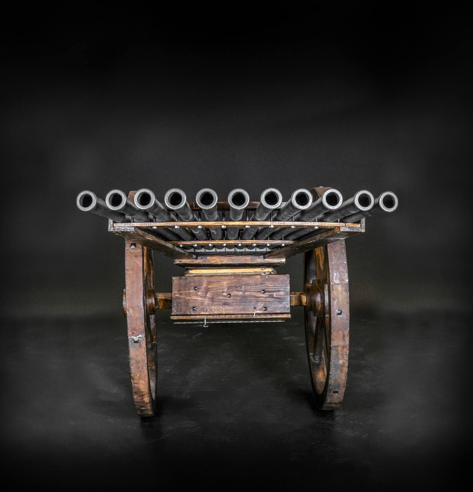 MediumHolzmodell eines Orgelgeschützes mit gusseisernen Rohren