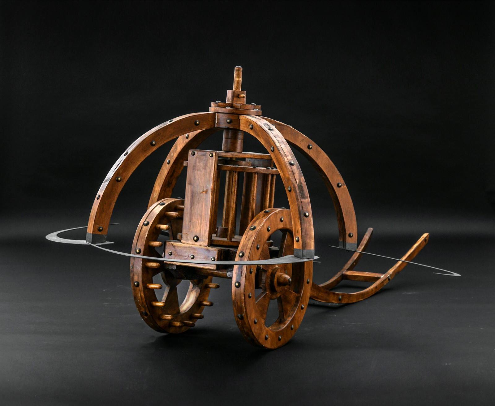 MediumHolzmodell eines Sichelwagens mit Eisensicheln
