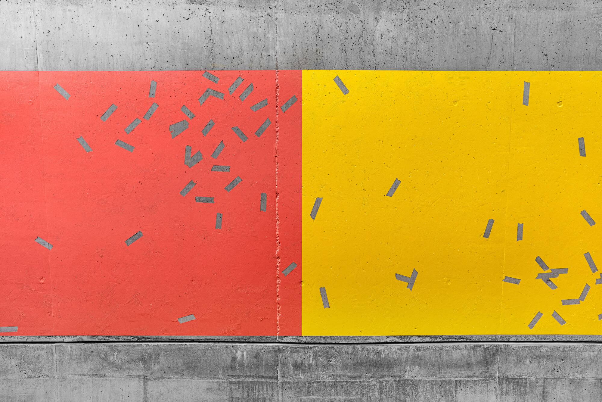 DescriptionDie Farbflächen wurden mit einer Latexgrundierung auf Beton aufgebracht. Zwölf Farbfelder führte die Malerin aus.Standort: Universitätsbibliothek Tübingen, Wilhelmstraße 32 , Ammerbau