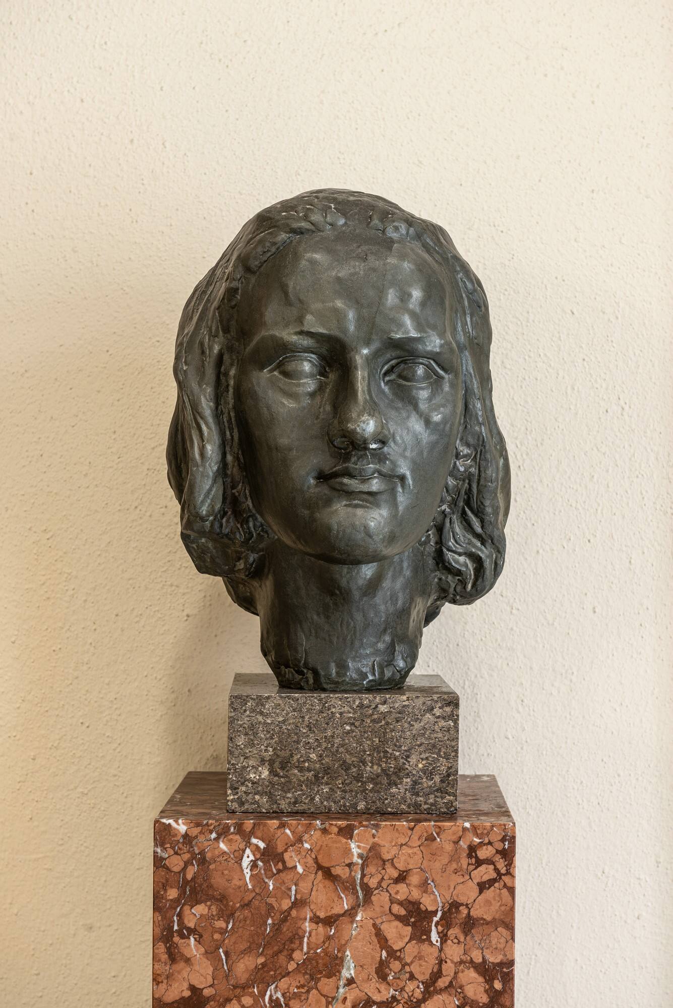 DescriptionBronzekopf des deutschen Dichters Friedrich Hölderlin. Hölderlin wird als Jüngling mit kinnlangem Haar dargestellt, die Plastik endet in Halshöhe.Standort: Geschwister-Scholl-Platz, Neue Aula, nördliches Treppenhaus, 1. Zwischengeschoss