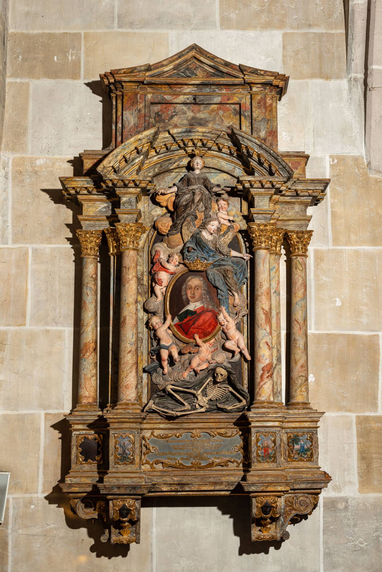 DescriptionEpitaph für Christoph Burkhard Bardili (21. Febr.1694-17. Aug. 1713), Student der Universität Tübingen.Standort: Stiftskirche Tübingen, linkes Seitenschiff, 4. Nische, Ostwand.