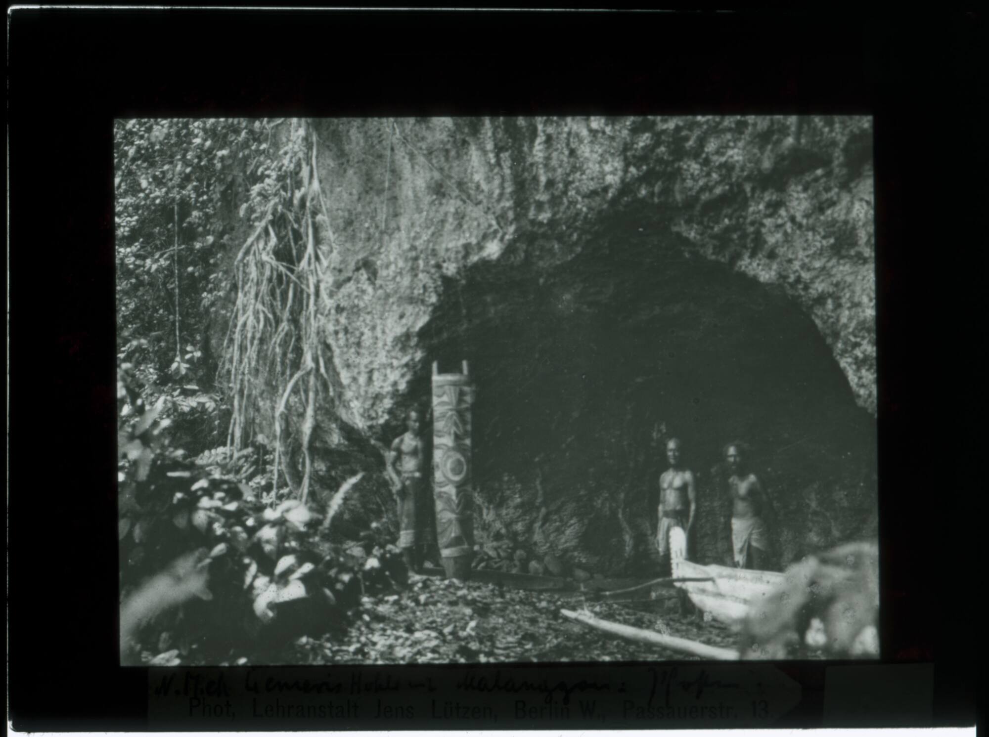 DescriptionHöhleneingang am Strand bei der Halbinsel Lemeris, im Süden Neuirlands. In der Höhle wurden Schnitzwerke und Boote aufbewahrt.Fotografische Dokumentation während der "Deutschen Marine-Expedition 1907-1909", vermutlich von Richard Schilling.