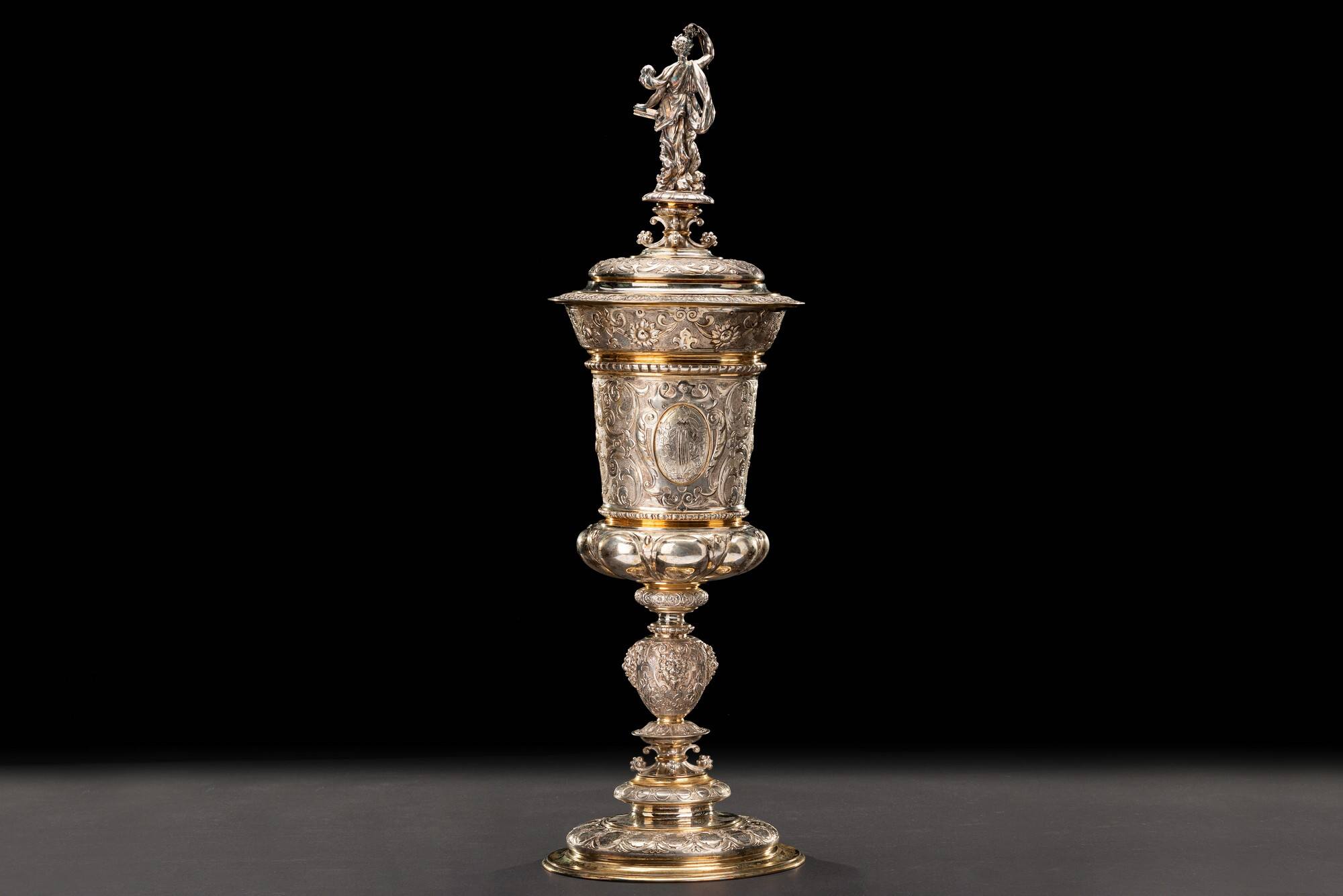 MediumSilber vergoldet, Deckelfigur in Treibarbeit