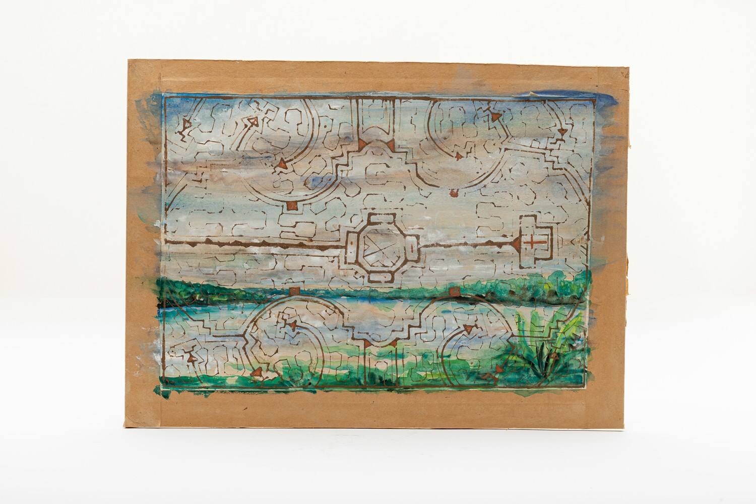 DescriptionTraditionelle Muster über Aquarell vom Yarinacocha-See gemalt. Im Hause einer Malerin gekauft. War zum Verkauf an Touristen (1983) bestimmt. Über die Bedeutungen der Muster gibt es nur bruchstückhafte Informationen. Ronin, die Riesenschlange, die als Geist-Wesen nach der Vorstellung der Shipibo-Conibo deren Welt wie ein unsichtbarer Horizont umschlingt, trägt auf ihrer Haut alle denkbaren Muster. Mit ihr und anderen Wesen können nur die Schamanen kommunizieren. Über deren Vermittlung erlangen die Töpfer*innen neue Muster aus der unsichtbaren Welt. Vor allem die Deutungen der Schamanen können daher über die Bedeutungen der Muster Aufschluss geben.