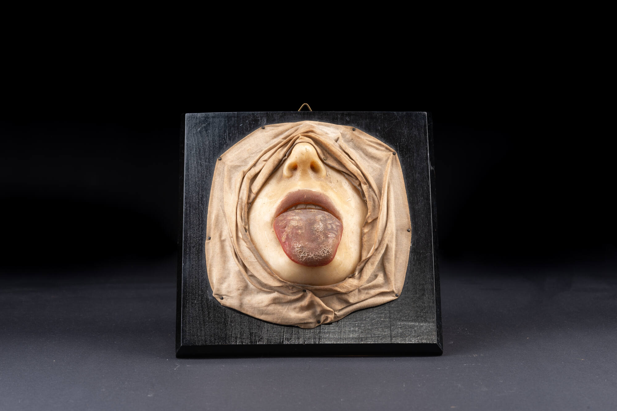 DescriptionBei diesem Patienten haben sich im Laufe der Jahre milchweiße Flecken auf dem Zungenrücken gebildet, die durch dunklere Längs- und Querstreifen unterbrochen sind. Beschwerden gab es nur durch schmerzhaftes Empfinden beim Essen und Sprechen. Die Geschichte der Moulagen reicht bis ins 17. und 18. Jahrhundert zurück.Damals wurden bereits anatomische Modelle aus Wachs hergestellt. Moulagen waren vor der Epoche der Farbfotografie die einzige Möglichkeit pathologische Veränderungen beim Menschen naturgetreu in Farbe zu zeigen. Diese Wachsabdrücke waren als Anschauungsmaterial bei der medizinischen Ausbildung hilfreich. Sie boten den Vorteil, die Krankheitssymptome in 3D und besonders detailgetreu darzustellen. Neben vielen Hautkrankheiten wurden oft Geschlechtskrankheiten, Tuberkulose oder Erkrankungen des Mund-Kieferbereichs abgebildet. Zum Glück blieben der Tübingen Sammlung einige Moulagen erhalten, weil sie durch den Kustos Wolfgang Lindemann aus dem Müllcontainer gerettet wurden.