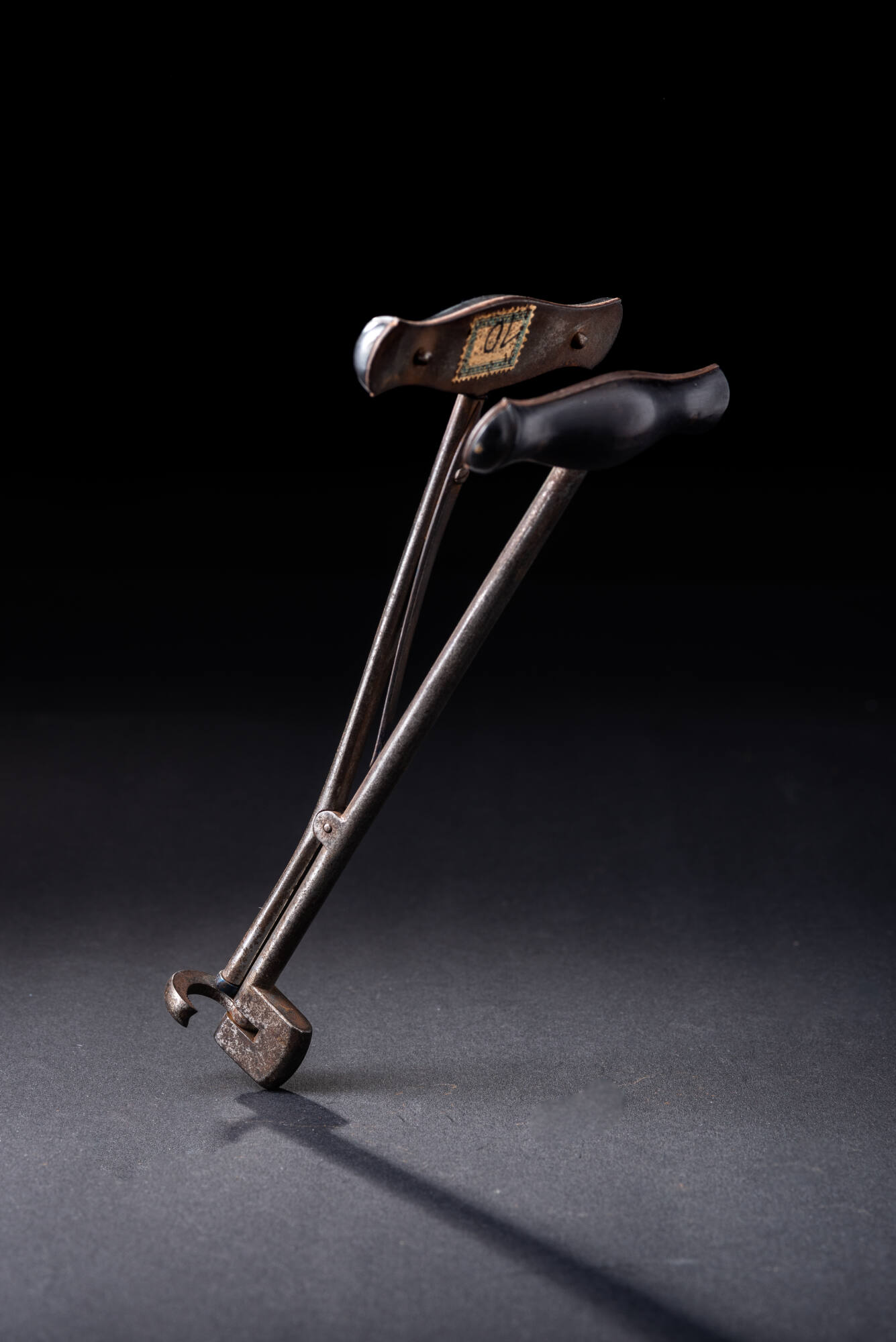 DescriptionDiese seit dem 18. Jahrhundert entwickelten Werkzeuge wurden aus verschiedenen Metallen hergestellt. Aufgrund ihrer vermuteten Herkunft tragen Sie auch den Namen „englischer Schlüssel“. Anfangs noch sehr einfach konstruiert, wurden die Zahnschlüssel zwischen dem 18. und dem 19. Jahrhundert verbessert und von vielen Zahnärzten als unverzichtbar angesehen. Der abgebildete Zahnschlüssel ist eine halbautomatische Version und wirkt durch Zusammendrücken der beiden Handgriffe. Sie werden in der Mitte durch eingelegte Plattfelder auseinandergehalten. Für die Anwendung des Zahnschlüssels wurde die drehbare Kralle über den entzündeten Zahn angesetzt und mit dem Widerlager als Stützhilfe gegen die Zahnwurzel gerichtet. Anschließend erfolgte die Entfernung des Zahns mit einer Drehbewegung. Dieser Eingriff musste anfangs schnell erfolgen, da keine Betäubungsmittel zum Einsatz kamen.DimensionsL x B x H: 18 × 9,3 × 3,6 cm