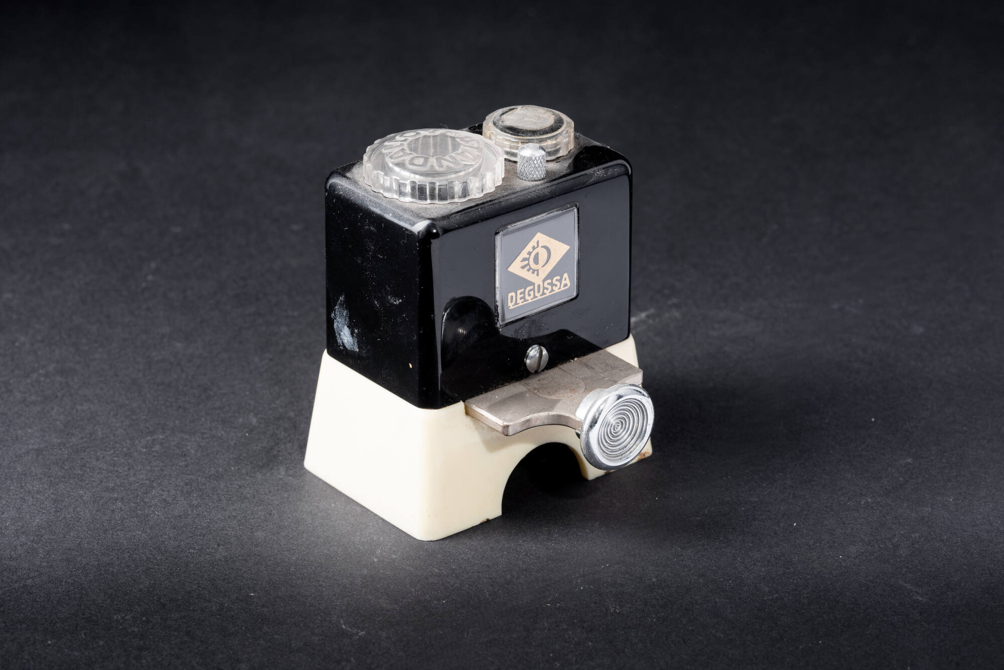 DescriptionSowohl im Mittelalter als auch in der Frühen Neuzeit herrschte eine Vielfalt an verwendeten Zahnfüllungen, die vom Wachs der Osterkerze bis zum Gummi reichte. Im späten 18. Jahrhundert tauchten preiswerte Amalgamfüllungen auf, die jedoch zunächst heftige Kontroversen auslösten. Mit der Entwicklung der Lokalanästhesie zum Ende des 19. Jahrhunderts kam es auch zum Durchbruch der Amalgamfüllungen, die bis heute in abgeänderter Form verwendet werden. Das hier dargestellte Objekt wurde von der Firma Degussa hergestellt, die 1873 als „Deutsche Gold- und Silber-Scheide-Anstalt vorm. Roessler“ gegründet wurde. 1919 erwarb sie die Firma des Edelmetallunternehmers Dr. Richter & Co. in Pforzheim, aus welcher sich später die Hauptproduktionsstätte des Geschäftsbereichs Dental entwickelte. Diese produzierte unter anderem Amalgamspender für die zahnmedizinische Praxis.DimensionsH x B x T: 8 × 6,7 × 7,2 cm