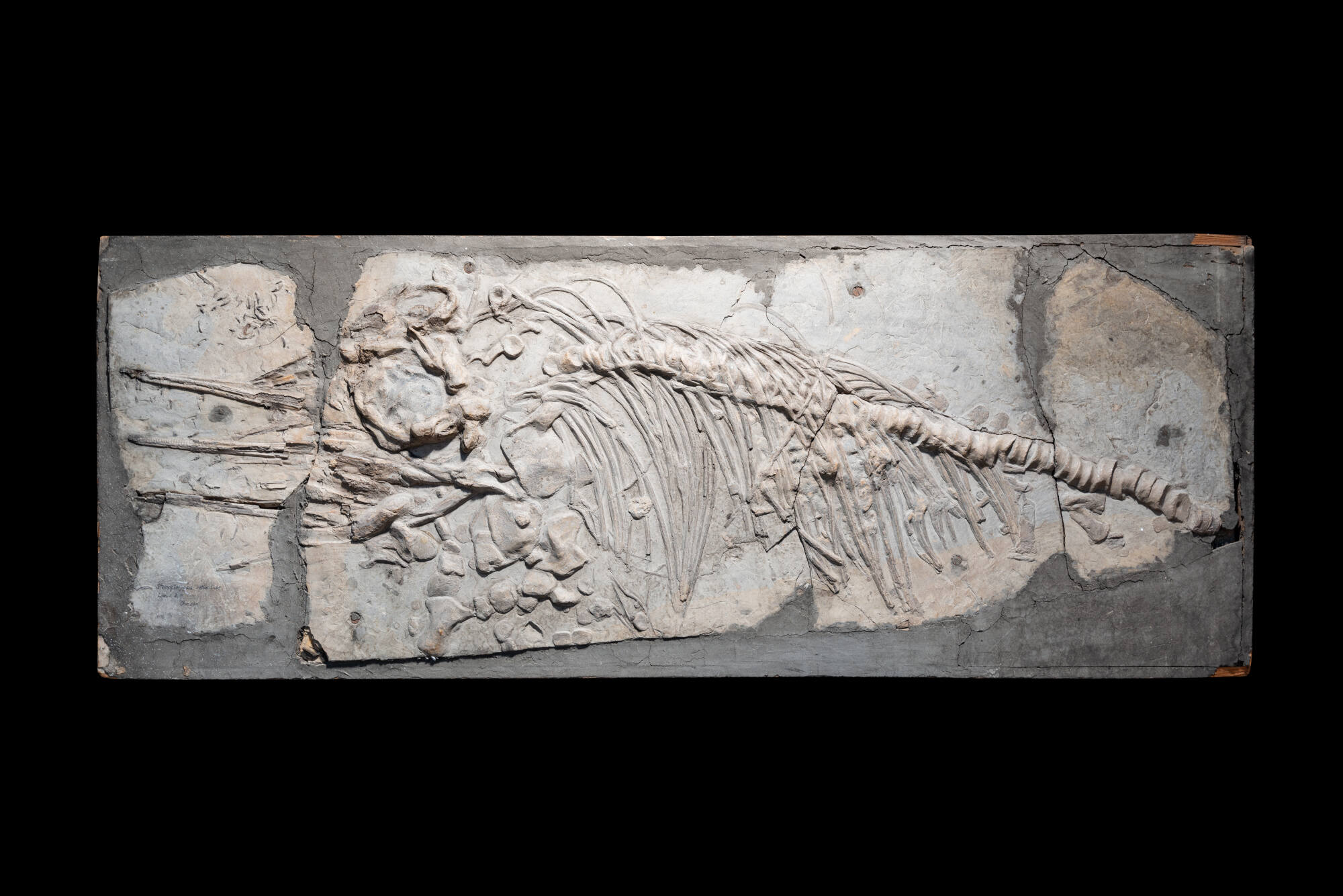 DescriptionStenopterygius zetlandicus (SEELEY 1880) (Reptilia, Ichthyosauria); Unterer Jura, Unteres Toarcium, Posidonienschiefer-Formation (Lias ɛ II,11), 182 Millionen Jahre; Ohmden, Landkreis Esslingen, Baden-Württemberg; 1847 Ankauf aus der Sammlung Friedrich Hartmann d.Ä. aus Göppingen; Inv.-Nr. GPIT-PV-30046 (syn. PV 5556, GPIT/RE/09445).Object numberGEO-Ps-GPIT-PV-30046