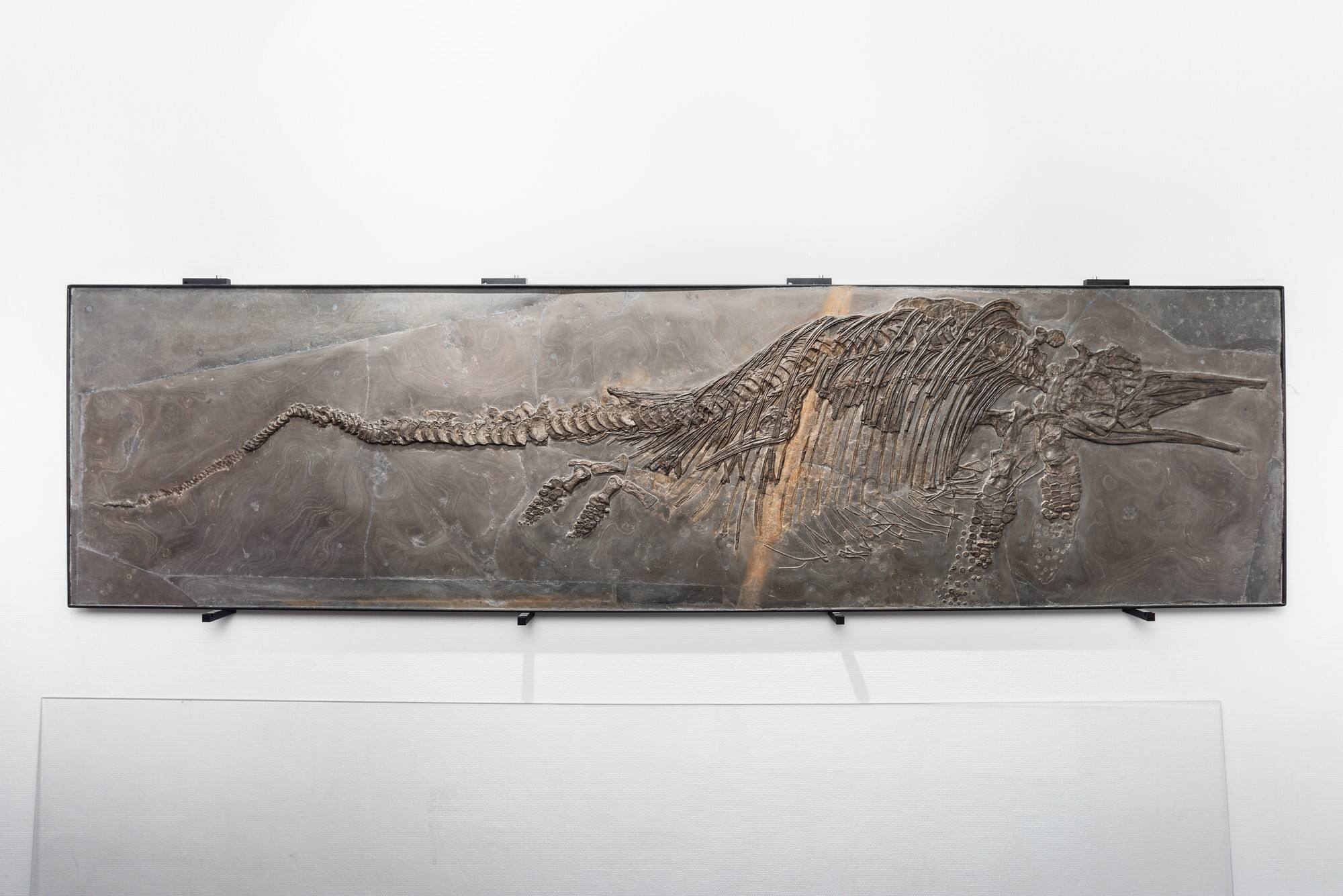 DescriptionStenopterygius quadriscissus (QUENSTEDT 1856) (Reptilia, Ichthyosauria); Unterer Jura, Unteres Toarcium, Posidonienschiefer-Formation (Lias ɛ II,4), 182 Millionen Jahre; Ohmden [?], Landkreis Esslingen, Baden-Württemberg; um 1850 Zugang in die Sammlung unter Quenstedt; Inv.-Nr. GPIT-PV-30028 (Mutter, syn. GPIT/RE/0928 -A) und GPITPV-30029 (Embryo; syn. GPIT/RE/09283-B) (syn. Gesamtobjekt: PV 7532).Object numberGEO-Ps-GPIT-PV-30028_30029