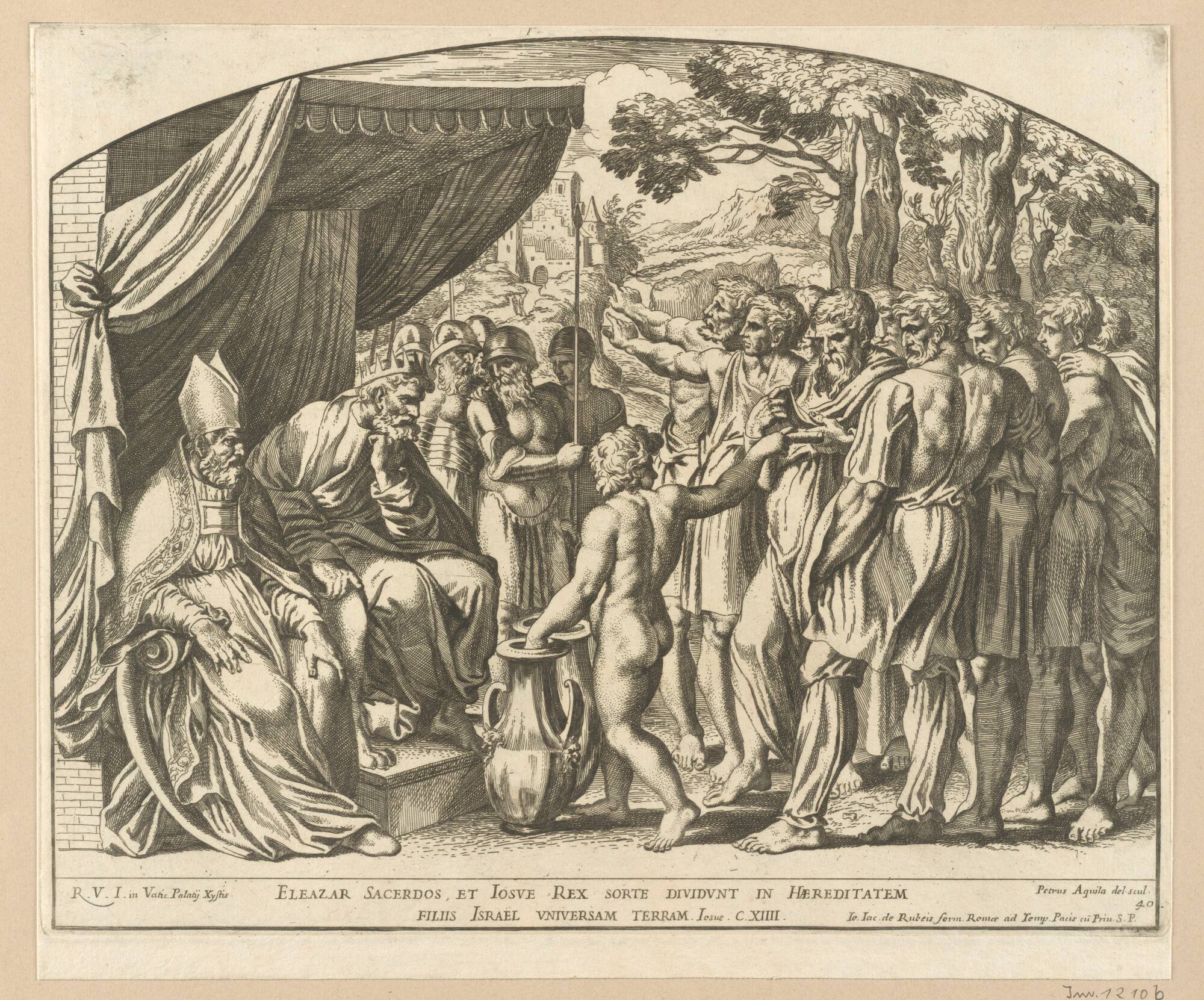 ELEAZAR SACERDOS, ET IOSVE REX SORTE DIVIDVNT IN HӔREDITATEM / FILIIS ISRAEL VNIVERSAM TERRAM. Iosue. C. XIIII.