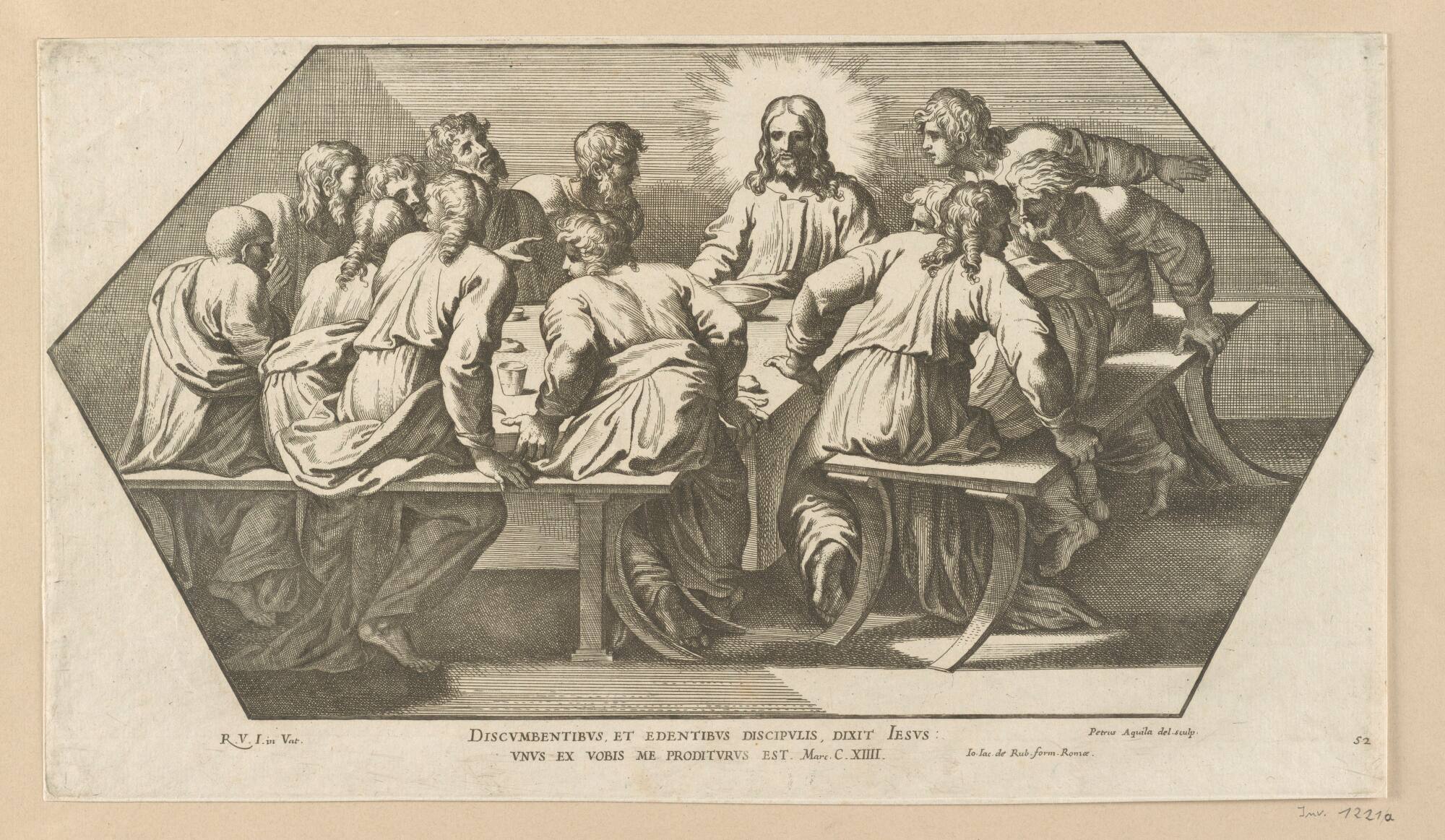 DISCVMBENTIBVS , ET EDENTIBVS DISCIPVLIS , DIXIT IESVS : / VNVS EX VOBIS ME PRODITVRVS EST . Marc. C. XIIII.