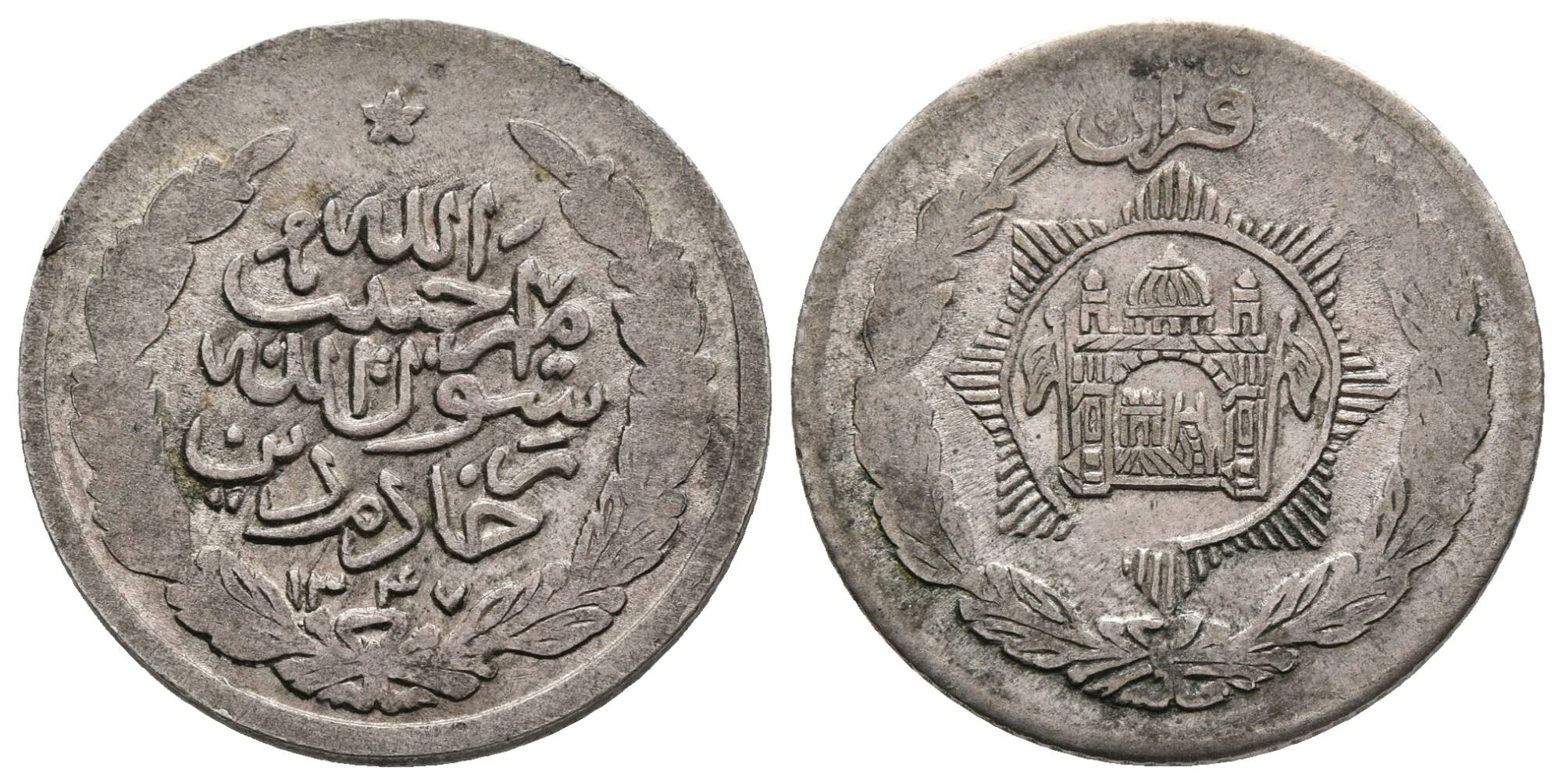 Afghanische Qirān-Münze, Kābul, 1347 H.