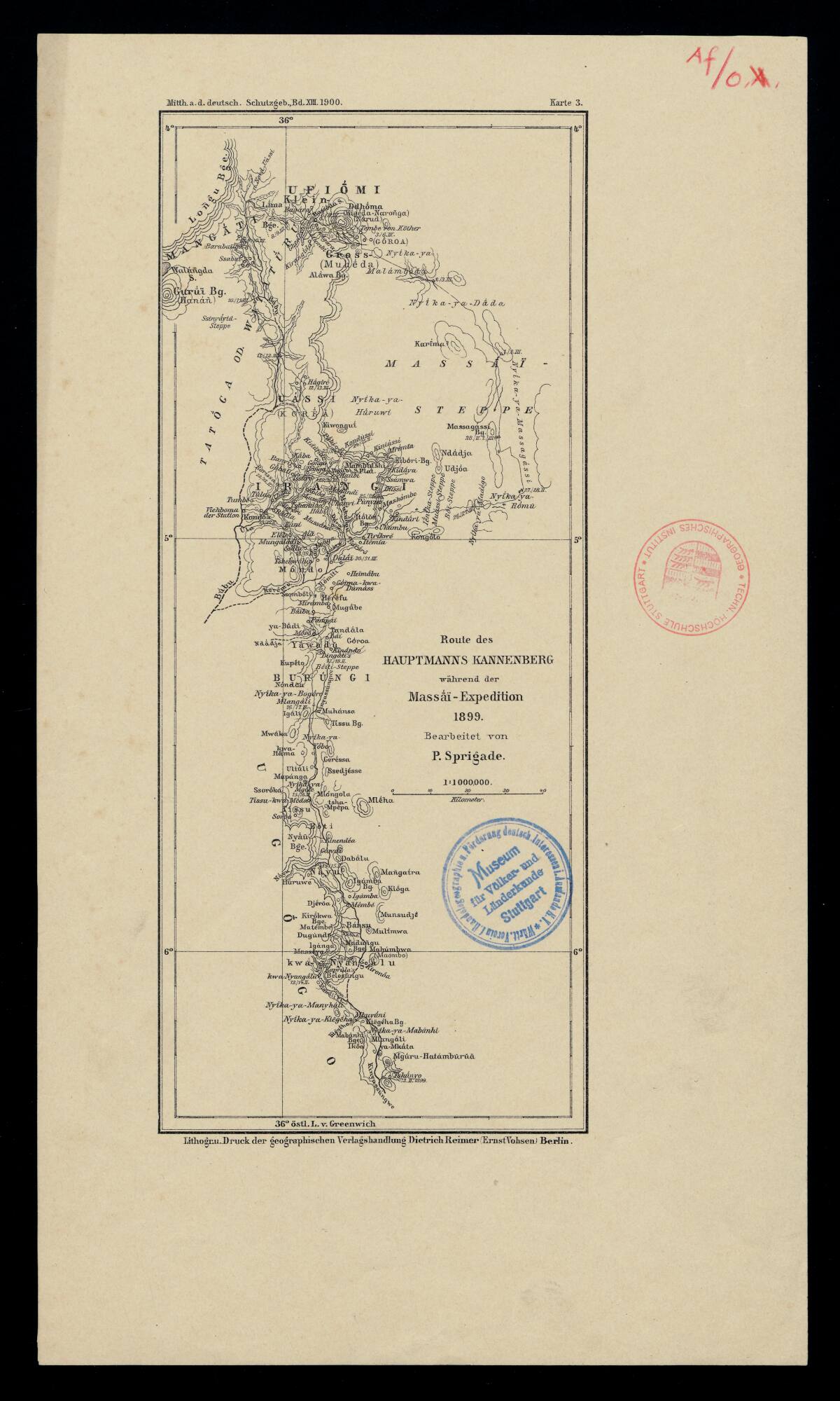 Route des Hauptmanns Kannenberg während der Massāï-Expedition