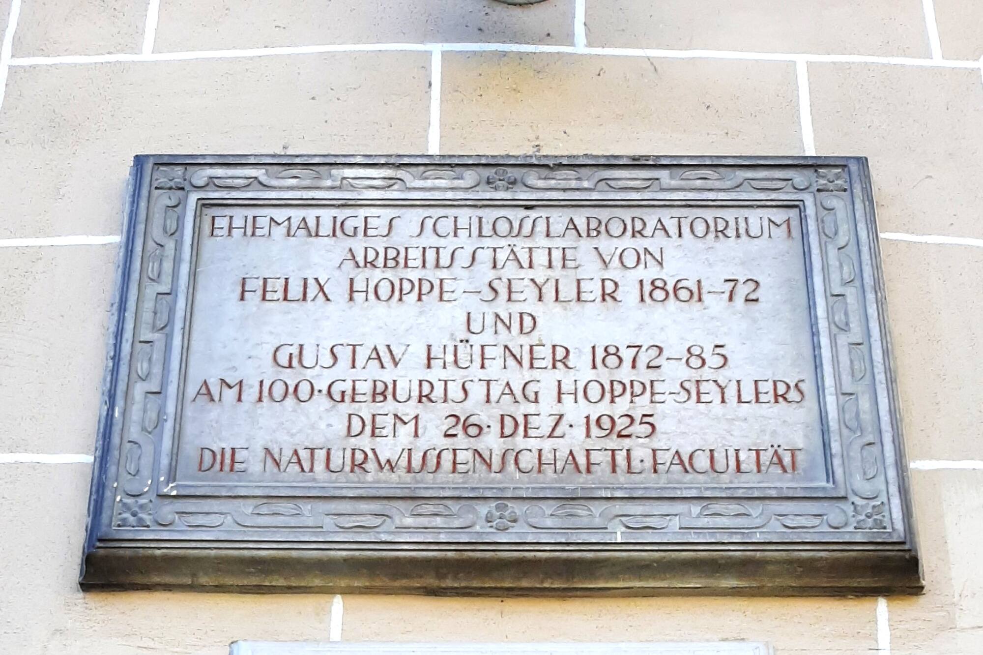 Gedenktafel für Felix Hoppe-Seyler und Gustav Hüfner