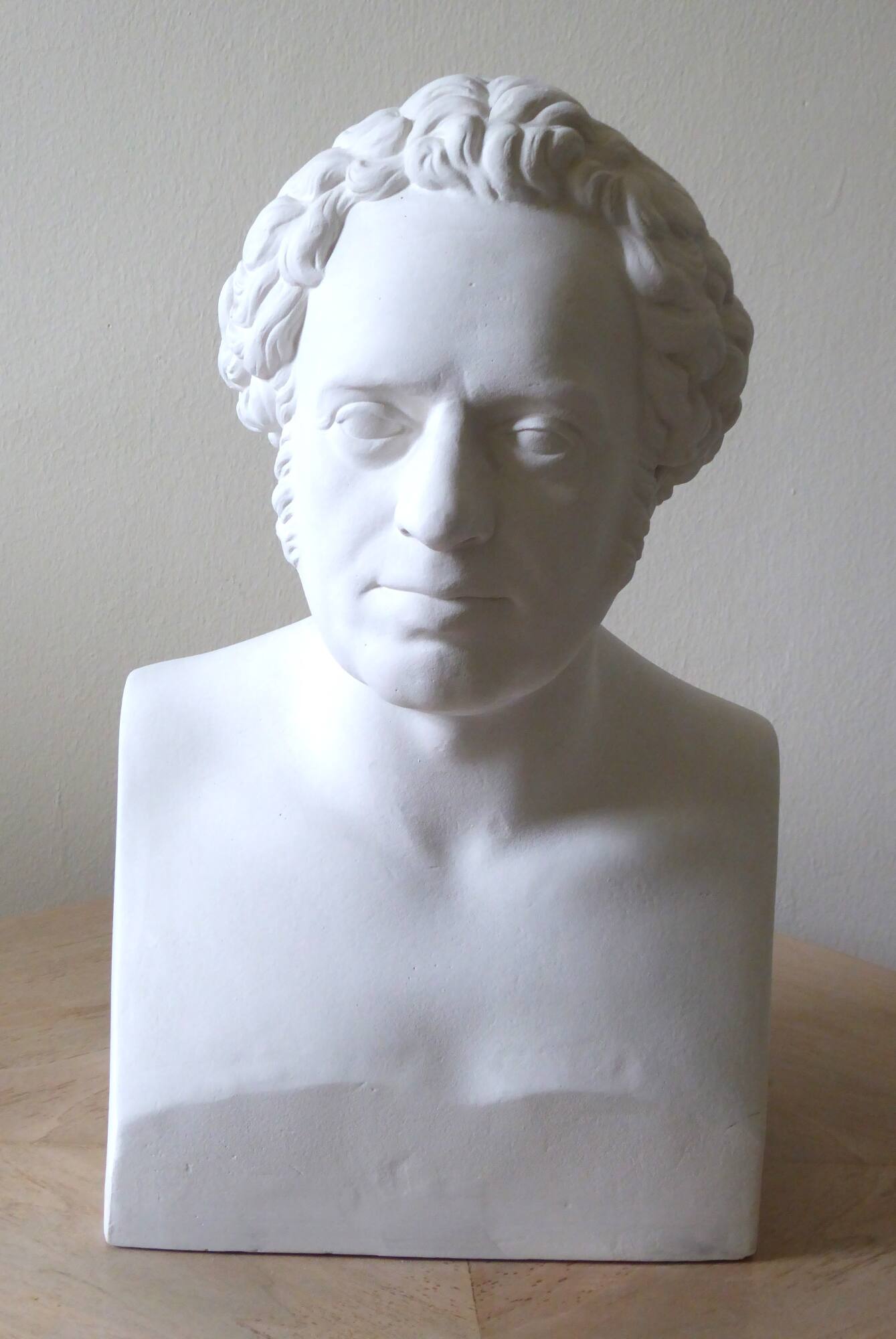 DescriptionDer evangelische Tübinger Kirchen- und Dogmenhistoriker Ferdinand Christian Baur (1792–1860) begründete um 1826 die bekannte jüngere, also evangelische, Tübinger Schule der Theologie und führte die historisch-kritische Methode in die neutestamentliche Forschung ein. Von Baur existieren bislang nur wenige Porträts: Ein Stahlstich mit einem Bildnis um 1830 stammt vom Tübinger Christoph Friedrich Dörr (1782–1841); eine zweite Graphik, ebenfalls in Stahl gestochen, wurde von Timothy Stansfield Engleheart (1803–1879) gearbeitet. In der bekannten, großen Tübinger Professorengalerie existiert ein von Emil Kornbeck (1818–1959) 1856 erstelltes Ölgemälde Baurs. Auch dieses Gemälde hängt im Dekanat der Evangelischen Fakultät der Universität Tübingen. Allerdings findet sich bisher kein Hinweis auf eine Büste von Ferdinand Baur in der einschlägigen Literatur. Schon allein aus diesem Grund verdient der Tübinger Gipsabguss Beachtung – selbst, wenn er nicht als erstklassig bezeichnet werden kann. Sicherlich wurde der Abguss nach einem Original angefertigt, von dem aber jede Spur fehlt. Standort: Theologicum, Liebermeisterstraße 12, Dekanat