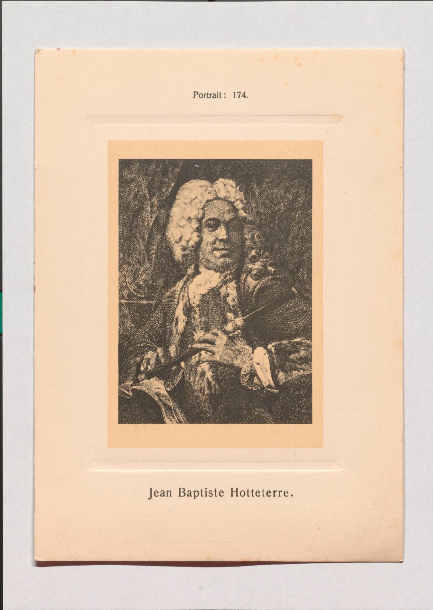 Jean Baptiste Hotteterre aus Adolph Goldbergs Porträt-Sammlung hervorragender Flöten-Virtuosen, Dilettanten und Komponisten