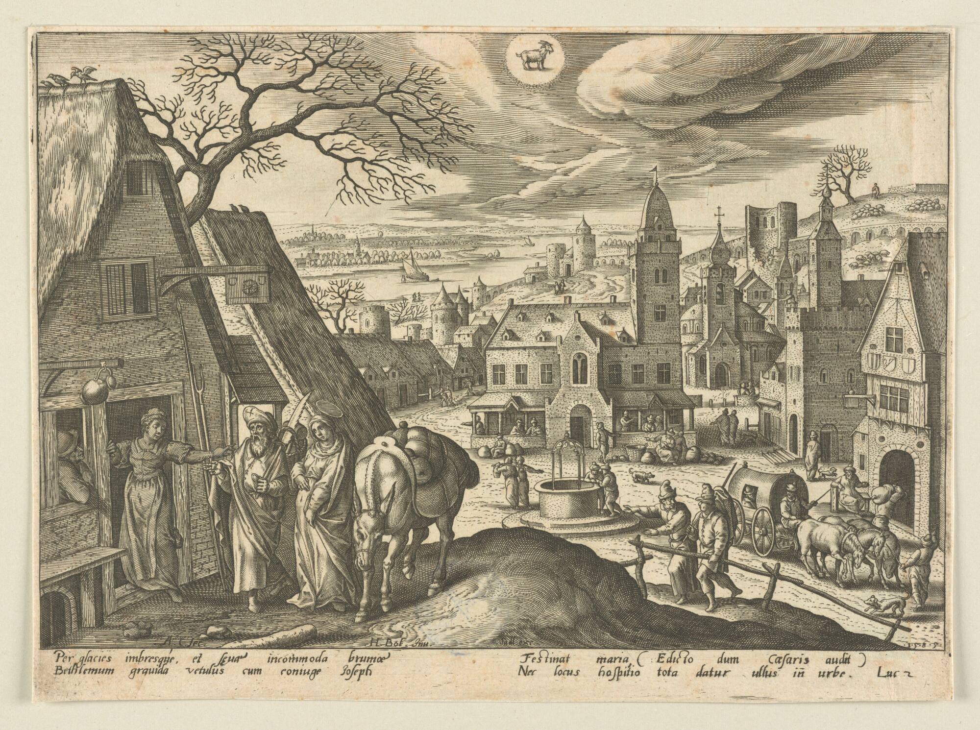 - Blatt 13/13: Tierkreiszeichen Steinbock: Maria und Josef bei der Herberge