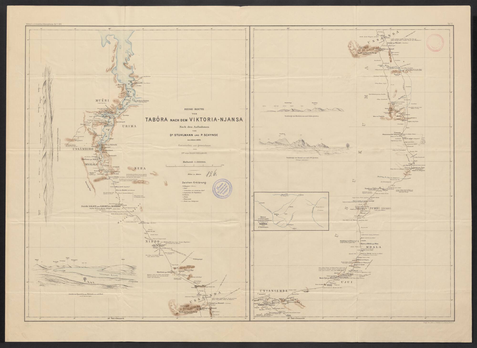Reiseroute von Tabora nach dem Viktoria-Njansa nach den Aufnahmen von Dr. Stuhlmann und P. Schynse im Jahre 1890 Tafel 6