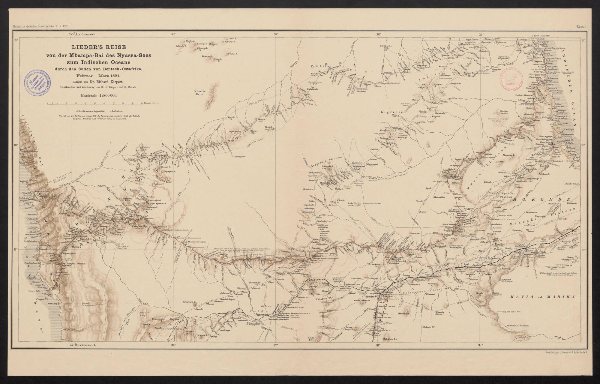 Lieder's Reise von der Mbampa-Bai des Nyassa-Sees zum Indischen Ozean durch den Süden von Deutsch-Ostafrika (Feb.-März 1894) Karte 1